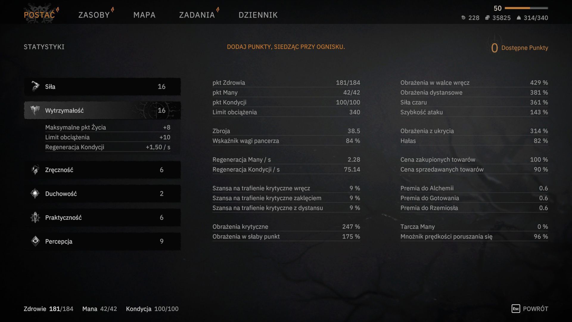 Jeżeli Wasza postać regularnie przekracza limit obciążenia, rozważcie zainwestowanie kilku punktów w statystykę Wytrzymałości.