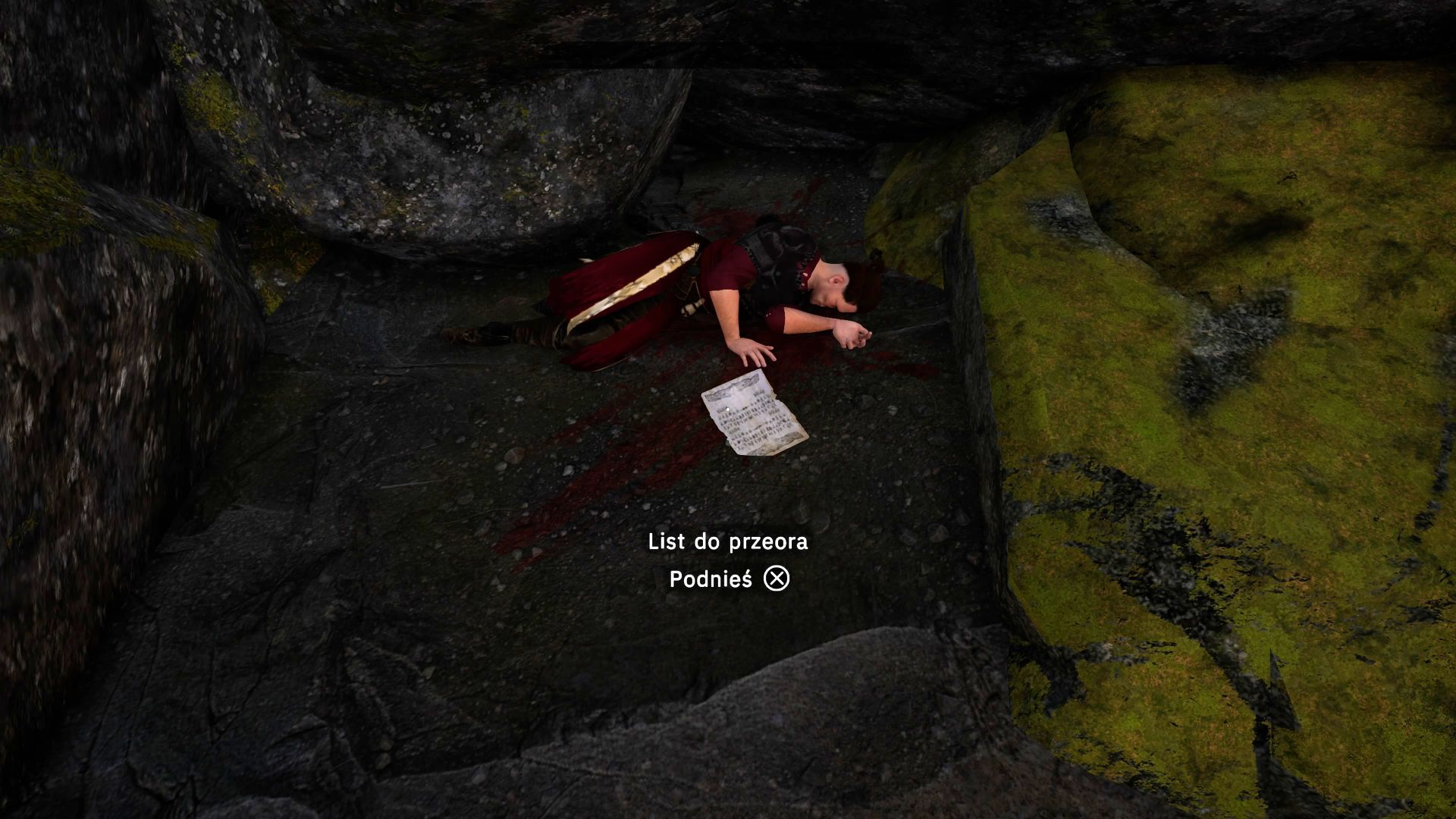 - Zajmijcie się dokładną eksploracją plaży i okolicznych wąskich ścieżek otoczonych skałami. Pozwoli to Wam znaleźć martwego Czerwonego Kapłana oraz List do przeora.