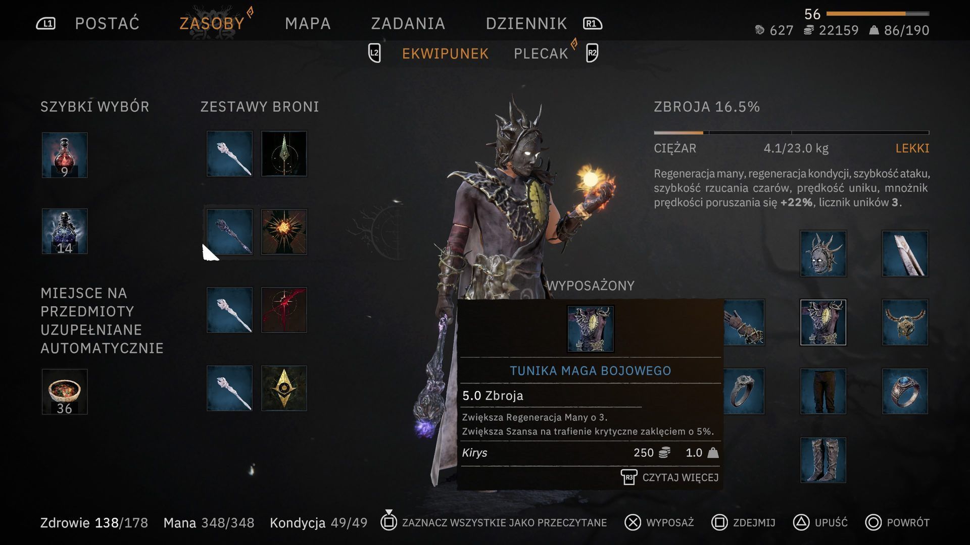 Możliwa do znalezienia w Grobowcu Dobrego Druida. Niezwykle przydatny zestaw dla każdego buildu opartego na magii. Specjalne efekty zwiększające siłę zaklęć oraz regenerację many pozwolą Wam rzucać potężniejsze inkantacje, bez obawy o wyczerpanie cennego zasobu magicznego potencjału. Pojedyncze części ubioru miksować możecie z innymi zestawami o podobnych efektach np. pancerzem Czaromiota albo Arkanisty.