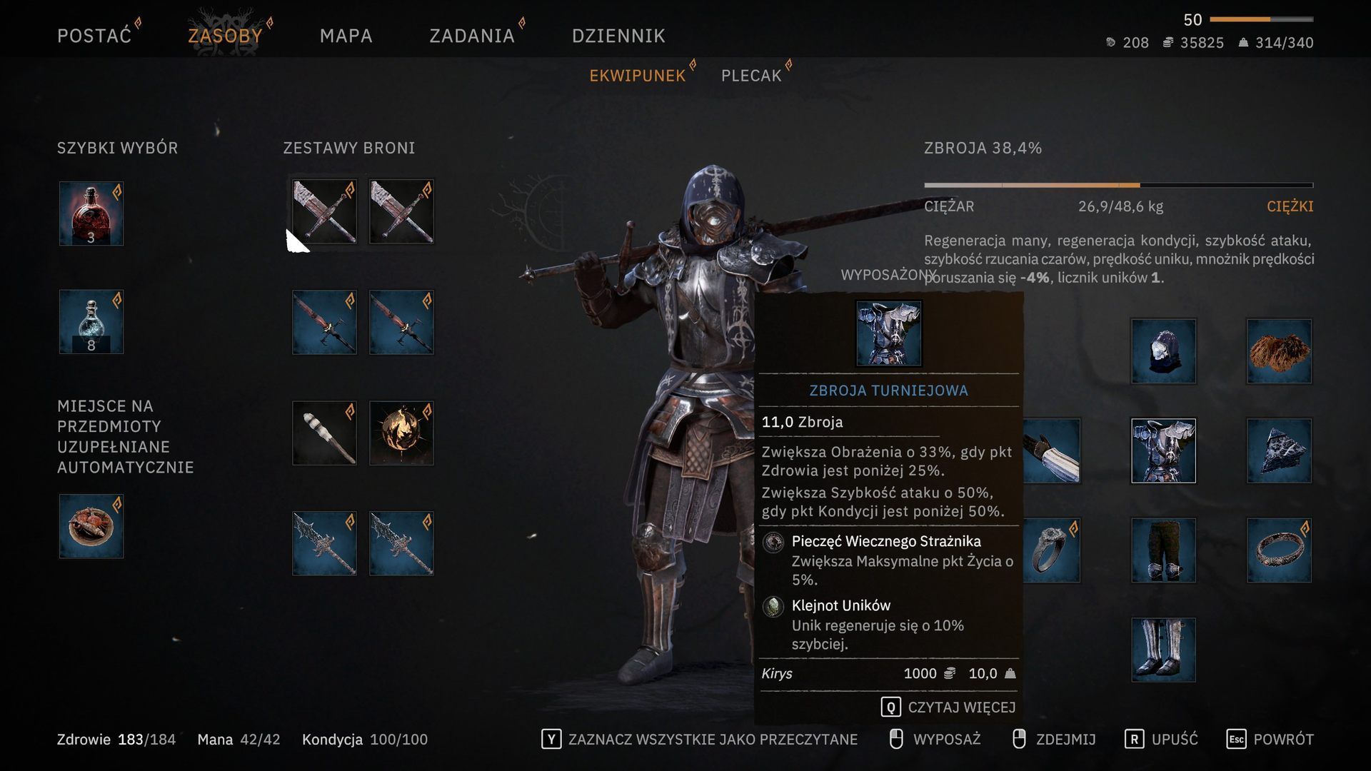 Zbroja Turniejowa (6 Siły, 10 Wytrzymałości, 3 Zręczności)