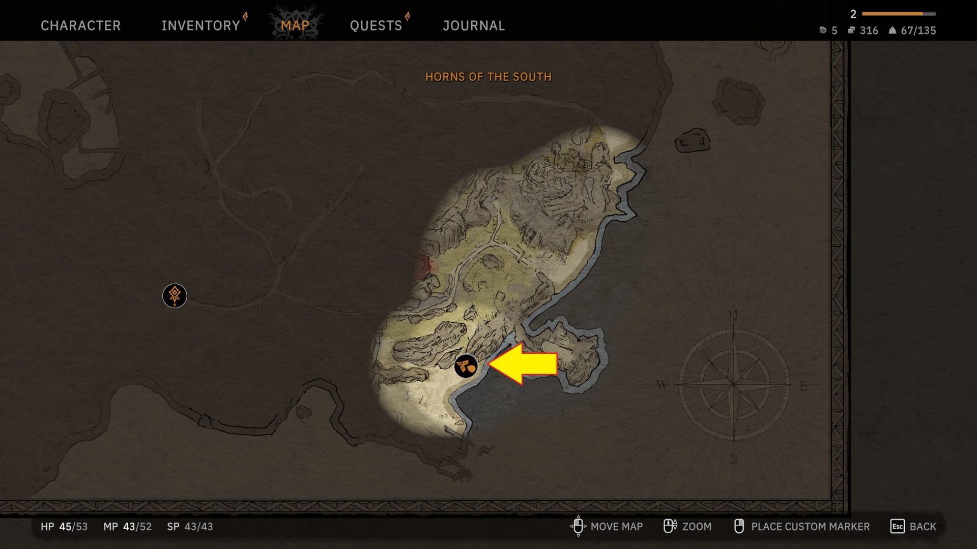 - Jeżeli dotarliście już do Rogów Południa, a wciąż nie macie łopaty, to również tutaj możecie ją łatwo znaleźć. Udajcie się na południe od miejsca lądowania. Wbite w ziemię narzędzie znajduje się w niewielkiej kapliczce na piaszczystej plaży. Przed wejściem kręci się kilku agresywnych przeciwników więc miejcie się na baczności.