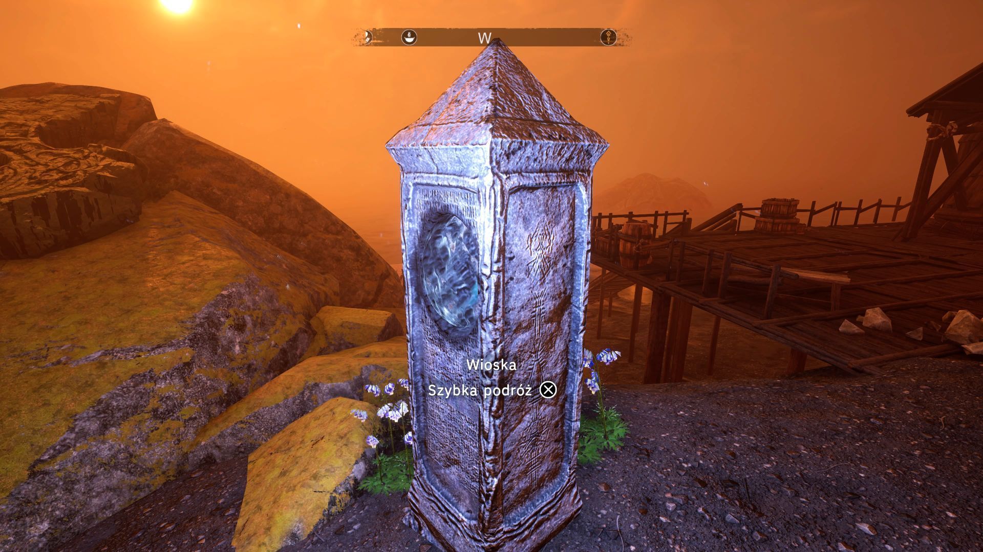 - Radzimy zerkać często na kompas - pojawiają się na nim pytajniki oznaczające pobliskie nieodkryte lokacje. Mogą to być przeróżne miejsca (np. lochy czy kapliczki) i są też wśród nich kolejne słupy związane z mechaniką fast travel. Punkty szybkiej podróży można też łatwo odnajdywać przy wejściach do dużych lokacji (np. fortu z pierwszego regionu) czy na terenie większych osad (np. Wioska z zachodniej części Rogów Południa). To bardzo pomocne szczególnie podczas wykonywania questów, które wymuszają dużo podróżowania pomiędzy różnymi obszarami mapy.