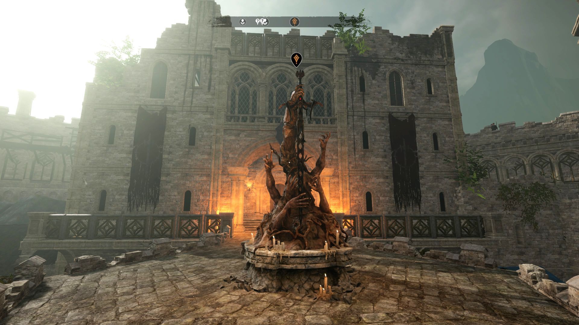 - Przy próbie interakcji z bramą możecie otrzymać komunikat od króla Artura - Jeszcze nie. Czuję, że część mojej duszy jest ukryta gdzieś tutaj. Musimy ją znaleźć, zanim pójdziemy dalej. Opuszczenie Rogów Południa będzie przez to niemożliwe.