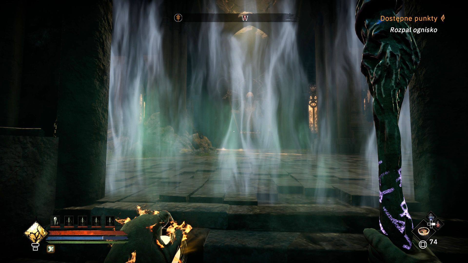 - Znajdziecie nieaktywny portal z dwoma stojącymi postaciami oraz piedestałem z symbolem miecza. Macie już fragment duszy Artura z Excalibura i pozwoli to aktywować portal i przenieść się do osobnej lokacji Pradawna Iglica.