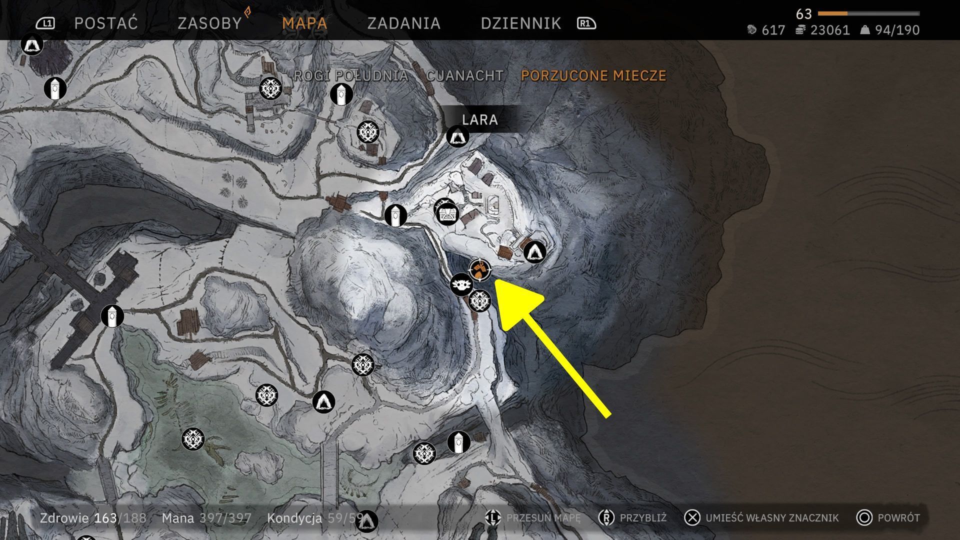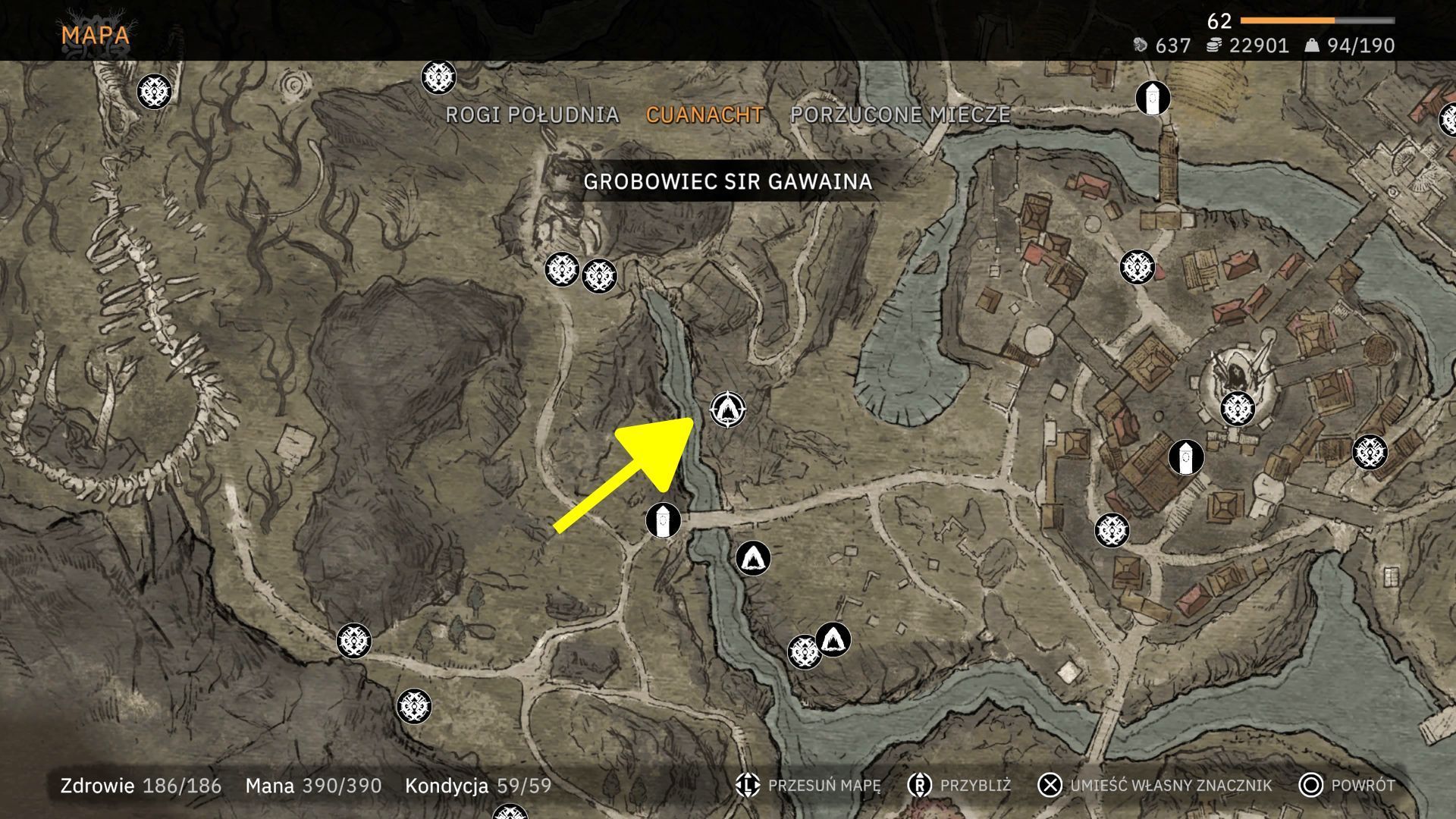- Przedostatnia lokacja z listy to Grobowiec Rycerza, który jest we wschodniej części regionu Porzucone Miecze. Rozpocznijcie przy punkcie szybkiej podróży Wioska Volker i udajcie się na południowy-wschód.