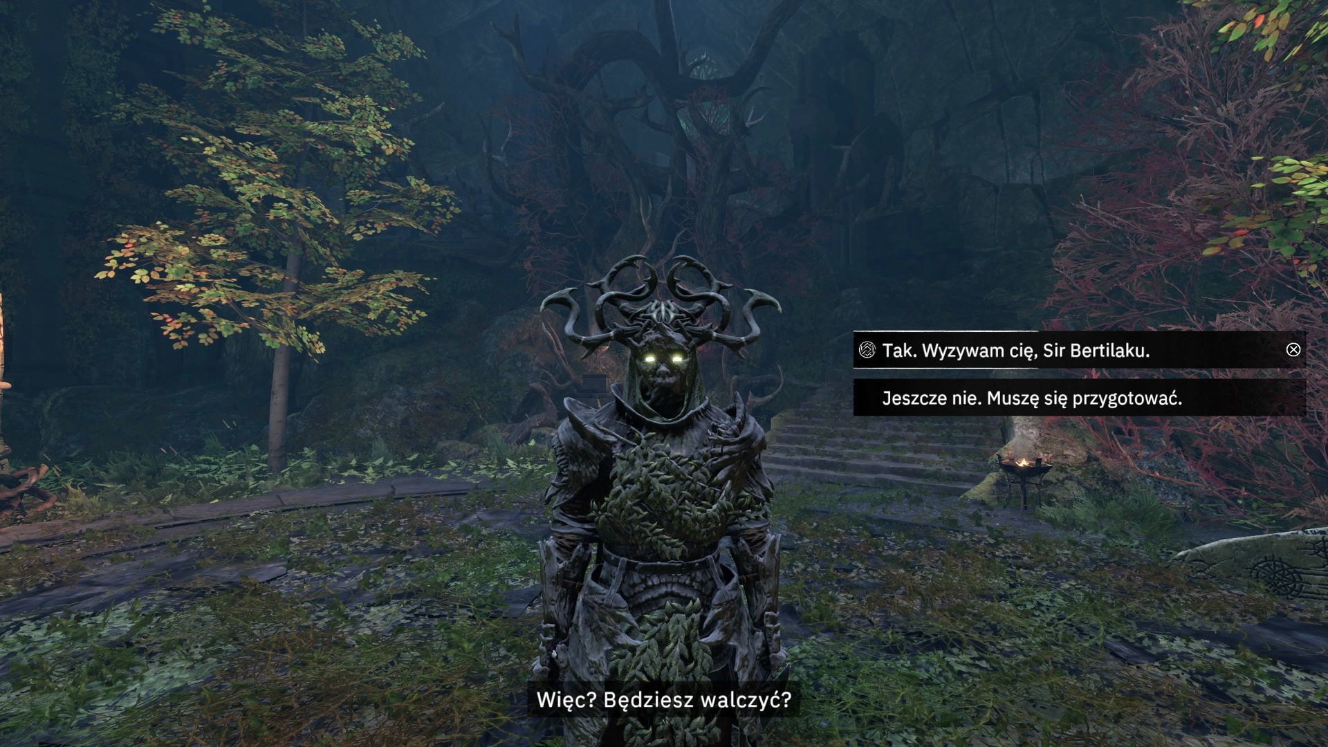 - Po wejściu do grobowca rozpocznie się automatycznie poboczne zadanie Zieleń jego serca i trzeba je będzie doprowadzić do końca. Dotrzyjcie do pieczary, w której przebywa Sir Bertilak - po rozmowie musicie go wyzwać na honorowy pojedynek.