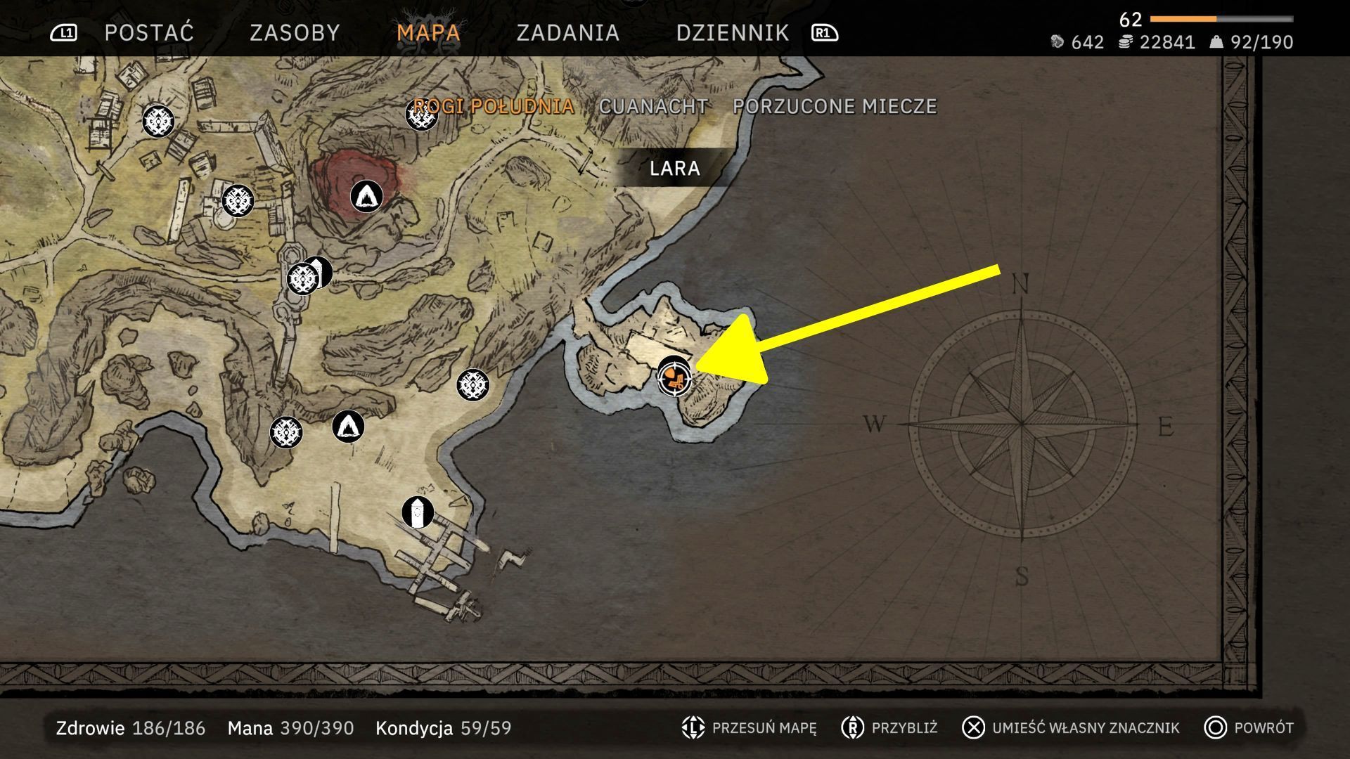 - Odwiedzicie teraz 5 różnych grobowców i pierwszym z nich jest Grobowiec Sir Lancelota z regionu Rogi Południa. Znajduje się on w małych nieoznaczonych ruinach niedaleko plaży, na której rozpoczęliście wcześniej eksplorację mapy. To lokacja, w której przebywa też handlarz Tadzio Cynamonowicz.