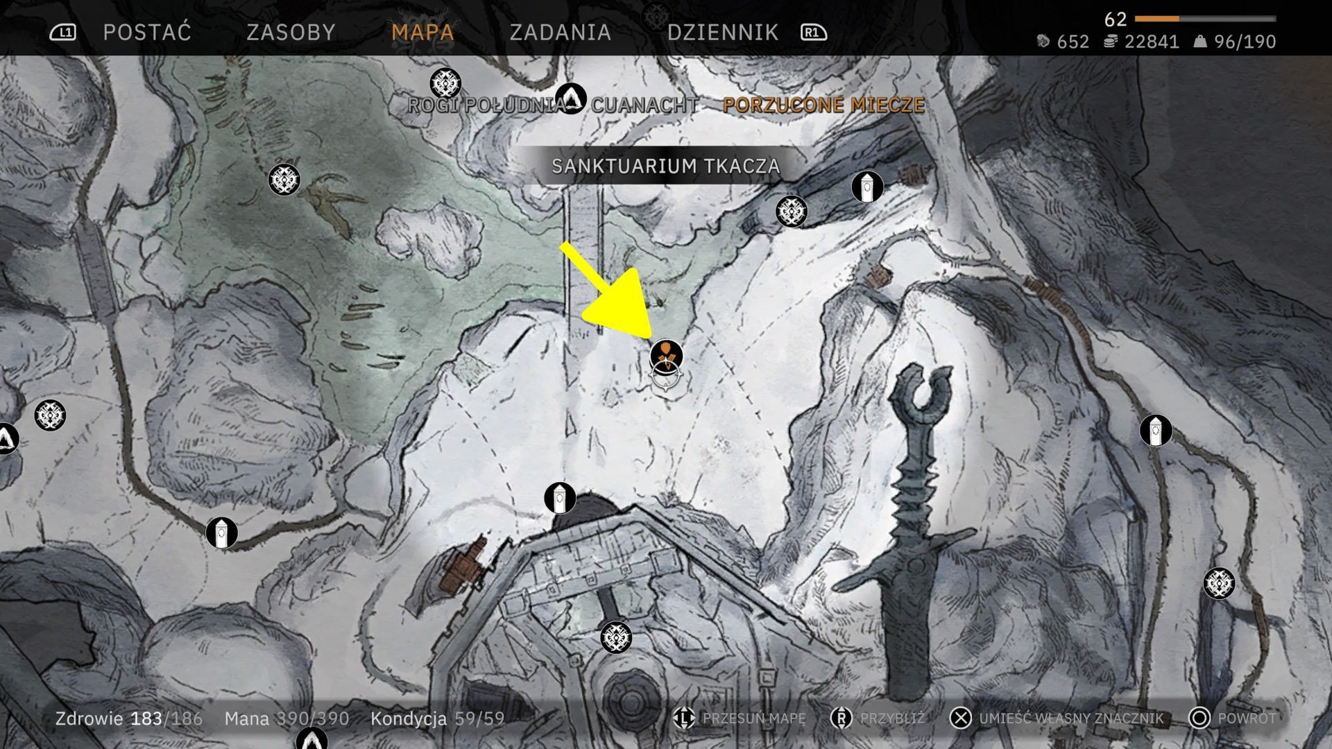 - Kolejna lokacja na liście to Sanktuarium Tkacza z trzeciego regionu Porzucone Miecze. Jest ono bardzo dobrze ukryte i rozpocznijcie przenosząc się do punktu szybkiej podróży Stolica. Wejście do sanktuarium jest na północny-wschód od niego.