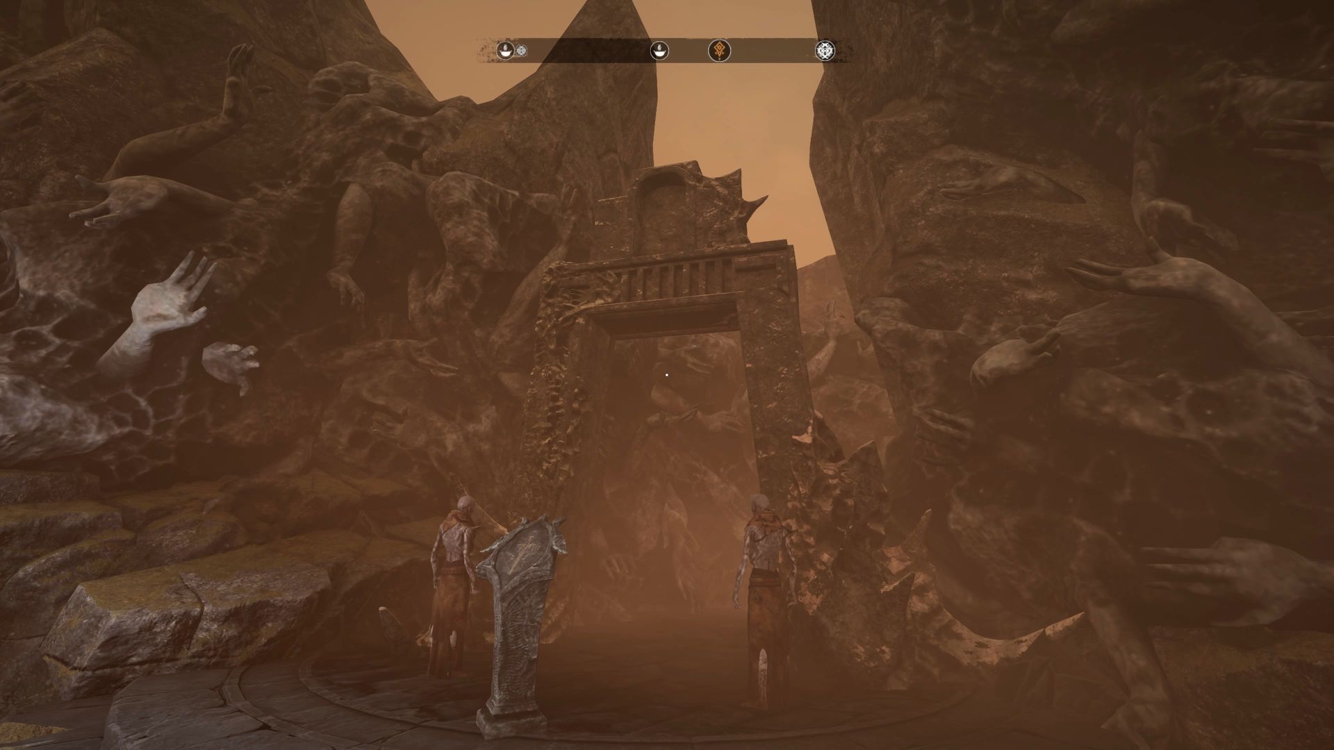 - Znajdźcie w ruinach piedestał z symbolem miecza - po interakcji z nim otworzy się wejście do grobowca.