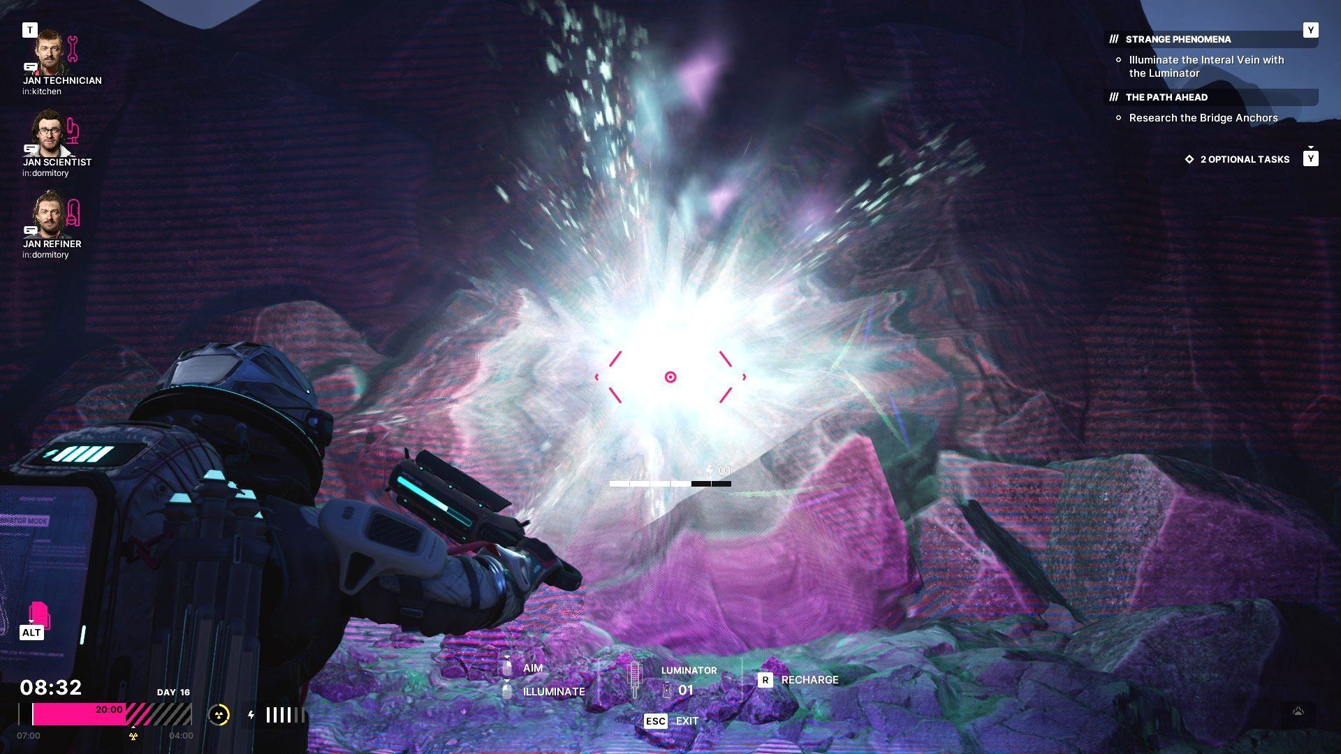 - Z luminatorem powróćcie do żyły interalu. Wybierzcie go z rozwijanego menu i używajcie gadżetu do oświetlania nietypowej anomalii. Nie przerywajcie tej akcji, dopóki nie dojdzie do małej eksplozji energii.