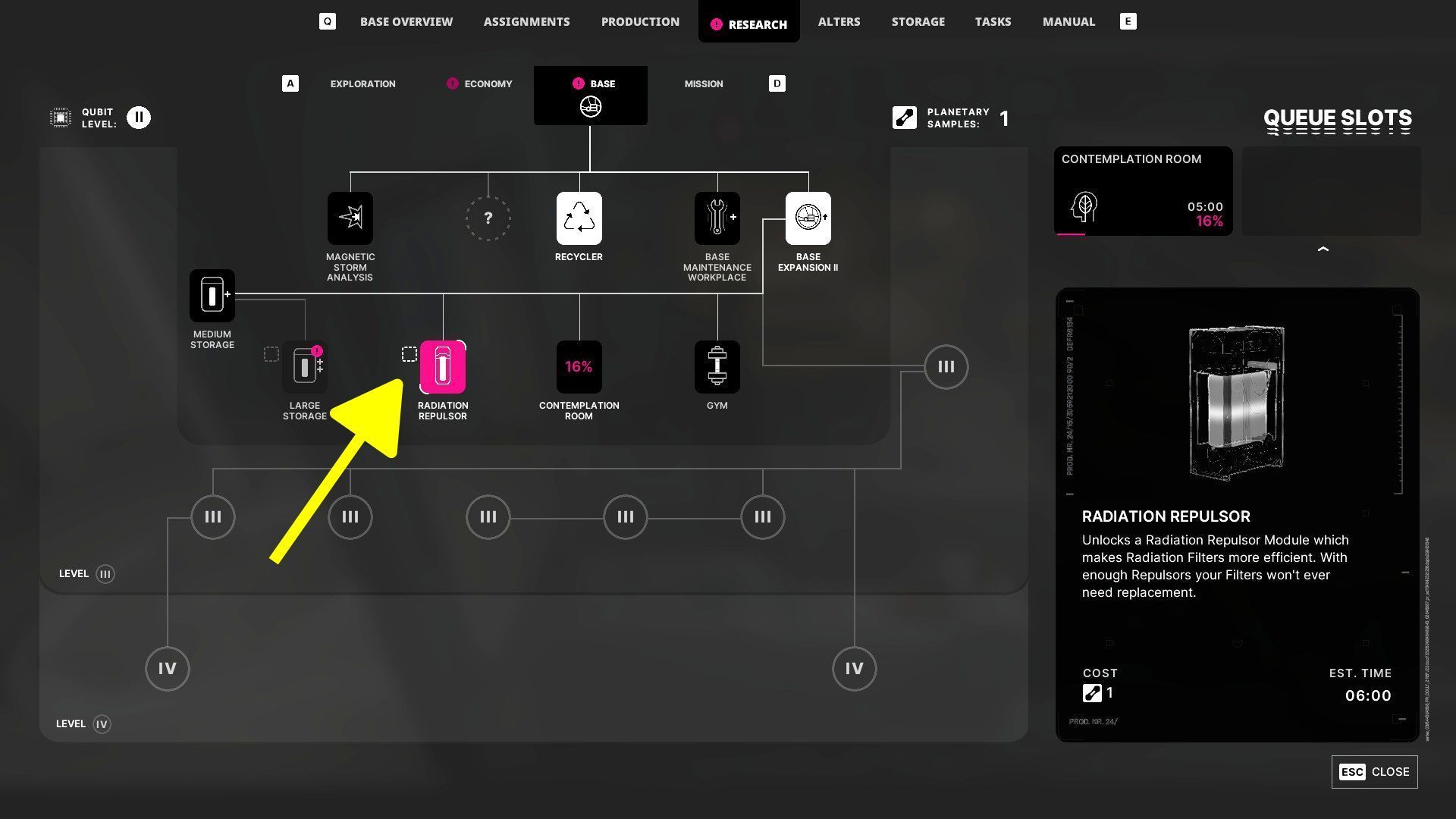 - Repulsor radiacyjny - Odblokuje on stawianie pomieszczeń powiązanych ze zwiększeniem ochrony bazy przed promieniowaniem i ograniczeniem zużywania filtrów radiacyjnych.