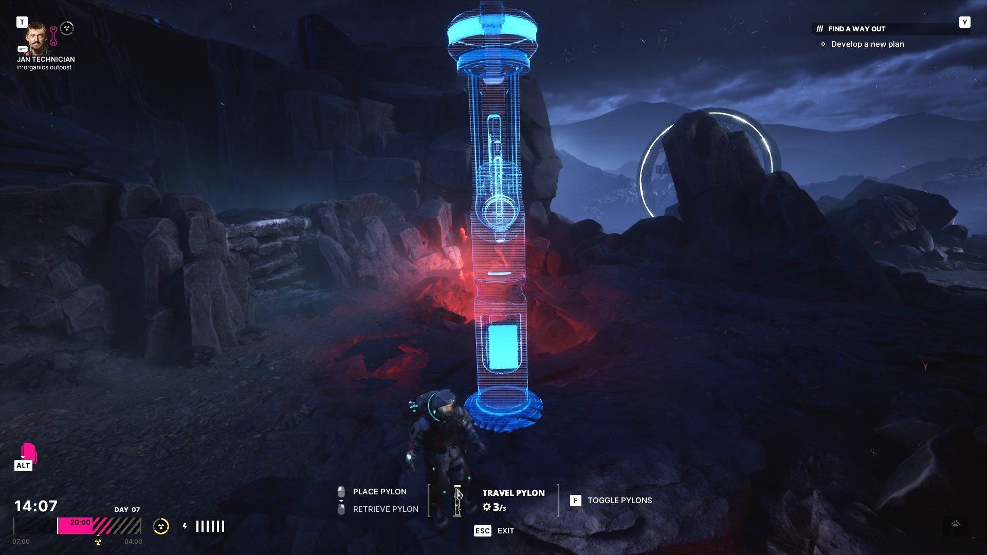 - Pylon podróżny możecie postawić w dowolnym miejscu w grze. Najlepiej wytypować lokacje, do których często powracacie, a gdzie nie macie żadnych punktów wydobywczych. Niestety pylon podróżny musicie zawsze połączyć z Waszą bazą, tzn. stawiać po drodze kolejne pylony i utworzyć stabilne połączenie (zielone linie w oknie budowy). Dopiero wtedy taki punkt stanie się aktywny.