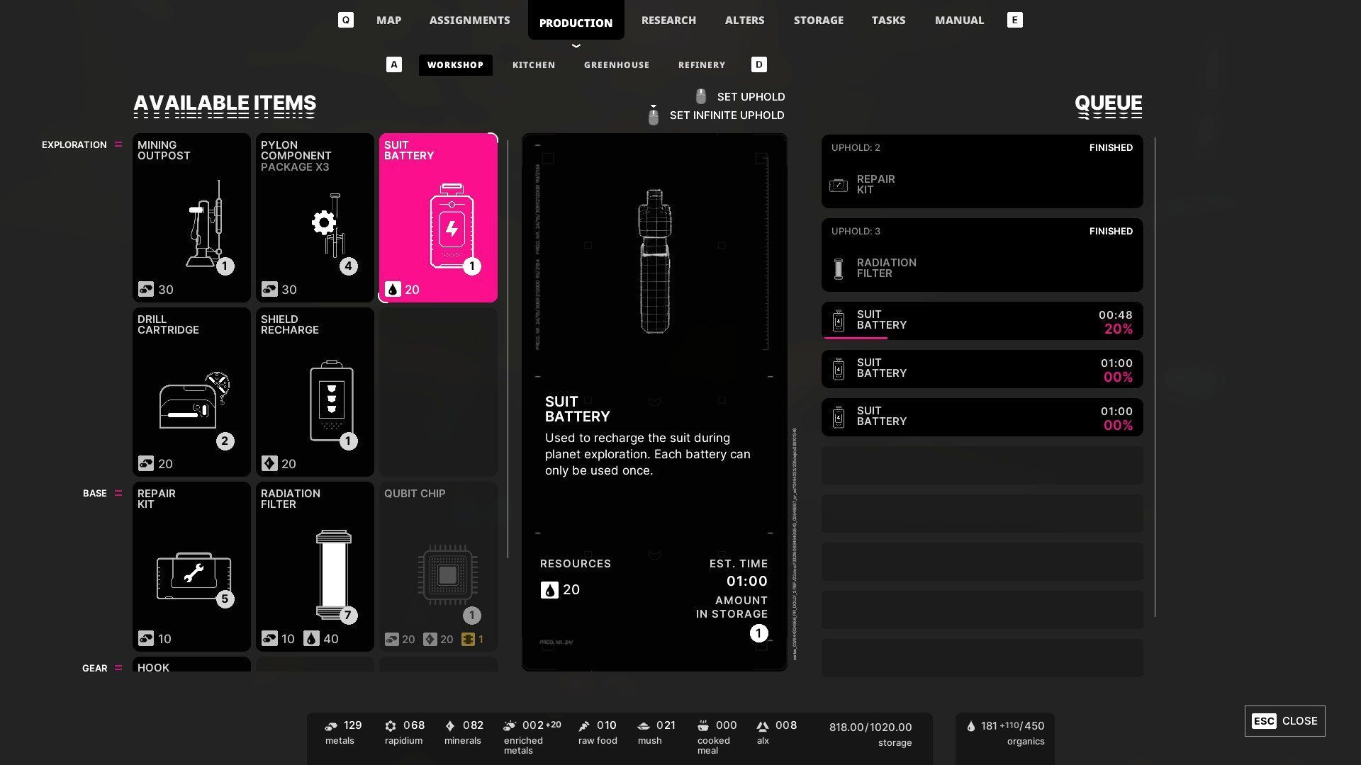 - Niestety wspomniane badania nie są łatwe do odblokowania. Musicie najpierw wynaleźć projekt Ulepszenie kombinezonu II i wymaga on poświęcenia 2 próbek planetarnych. Do momentu uzyskania dostępu do badań korzystajcie z innych metod opisanych powyżej.