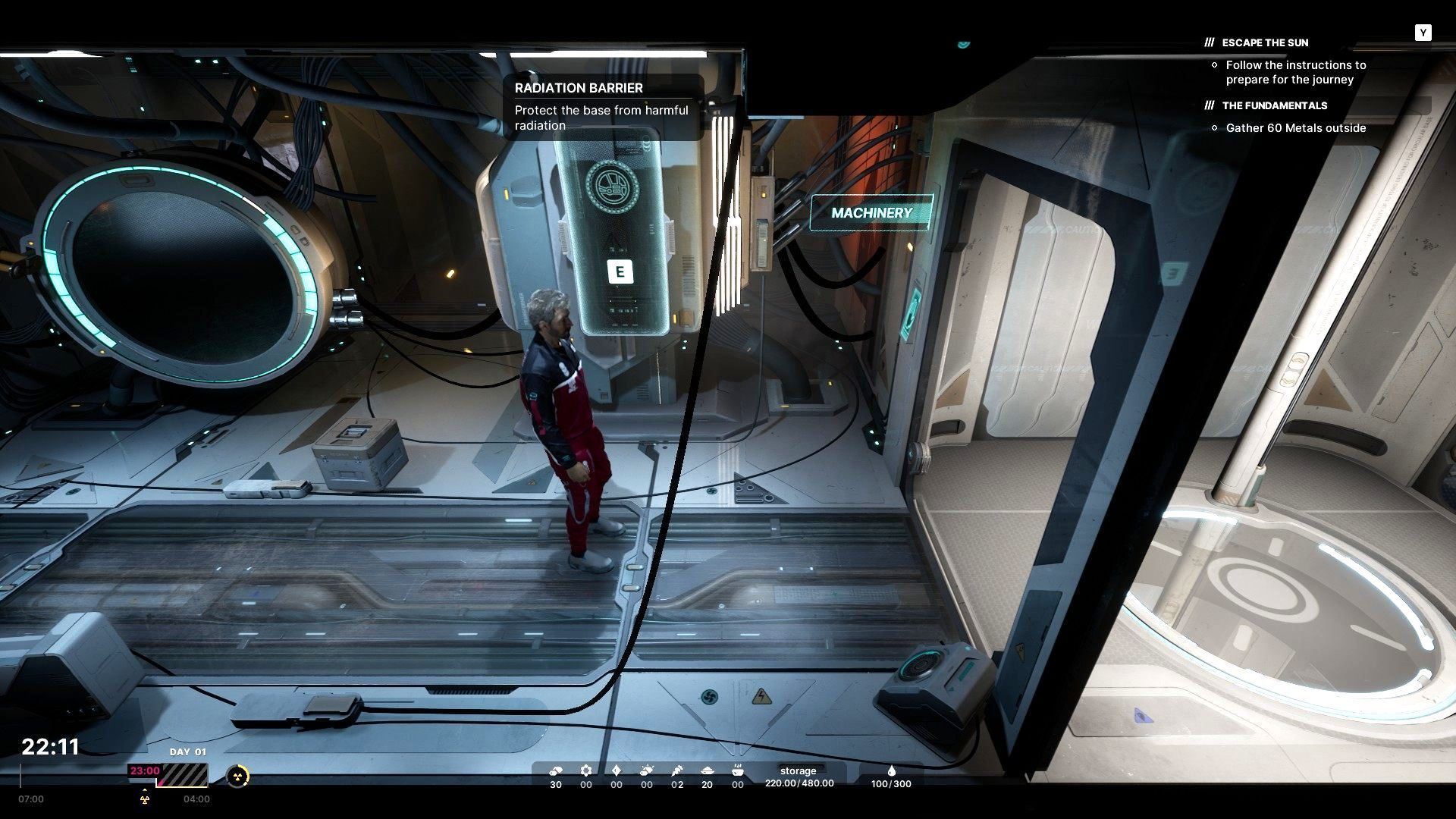 - Schronieniem przed promieniowaniem jest Wasza baza, przy czym właściwą ochronę gwarantuje bariera radiacyjna. Nie jest ona domyślnie włączona i musicie tego dokonać odwiedzając maszynownię.