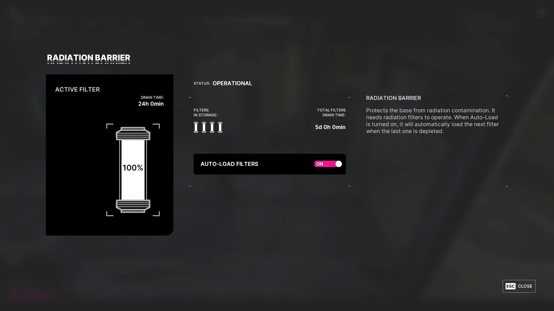 - Bariera domyślnie wymaga 1 filtra każdego dnia i warto zawsze mieć zapas 3-4 filtrów radiacyjnych na wypadek gdybyście zapomnieli o nich lub danego dnia mieli inne obowiązki.