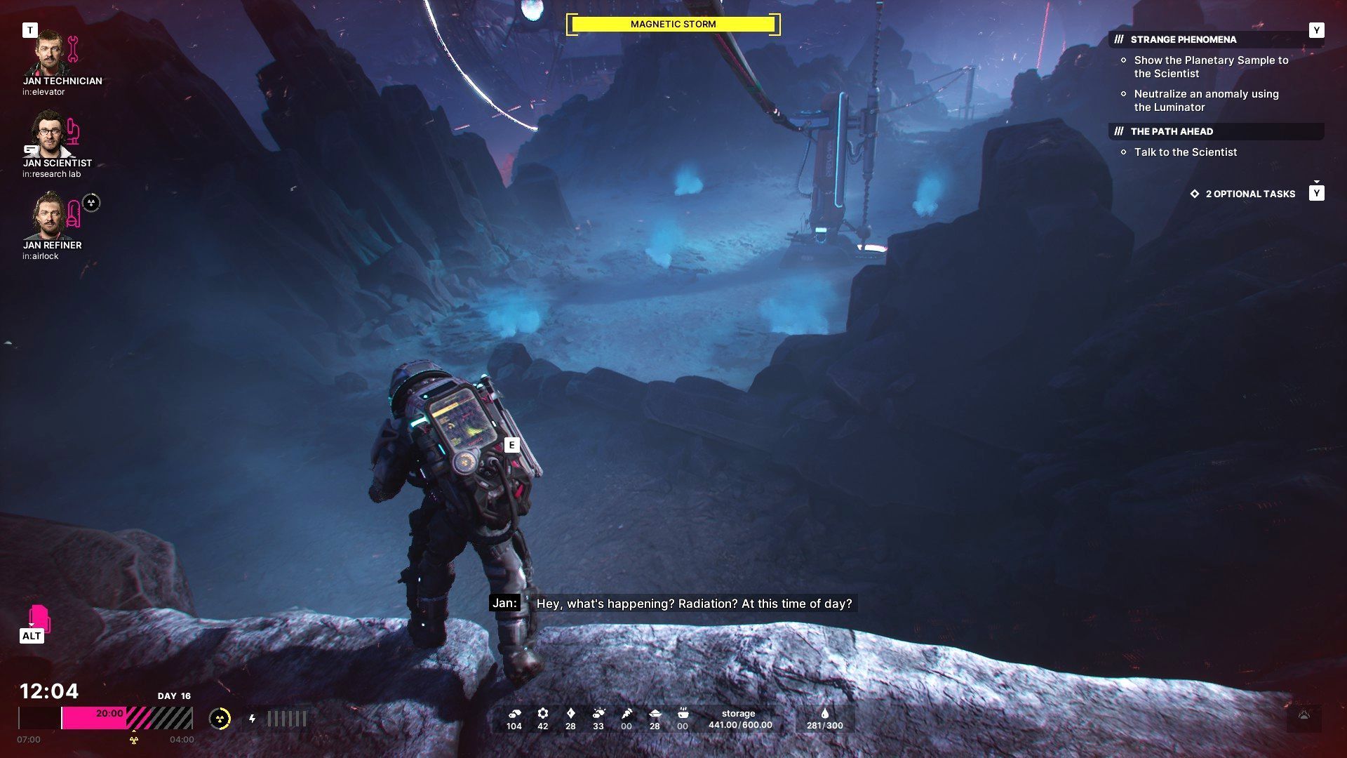 - Niedługo po tym jak w akcie 1 po raz pierwszy użyjecie luminatora pojawi się pierwsza burza magnetyczna. Gra ostrzega o tym komunikatem na ekranie i musicie jak najszybciej skryć się w bazie - dotrzyjcie do najbliższego punktu szybkiej podróży.
