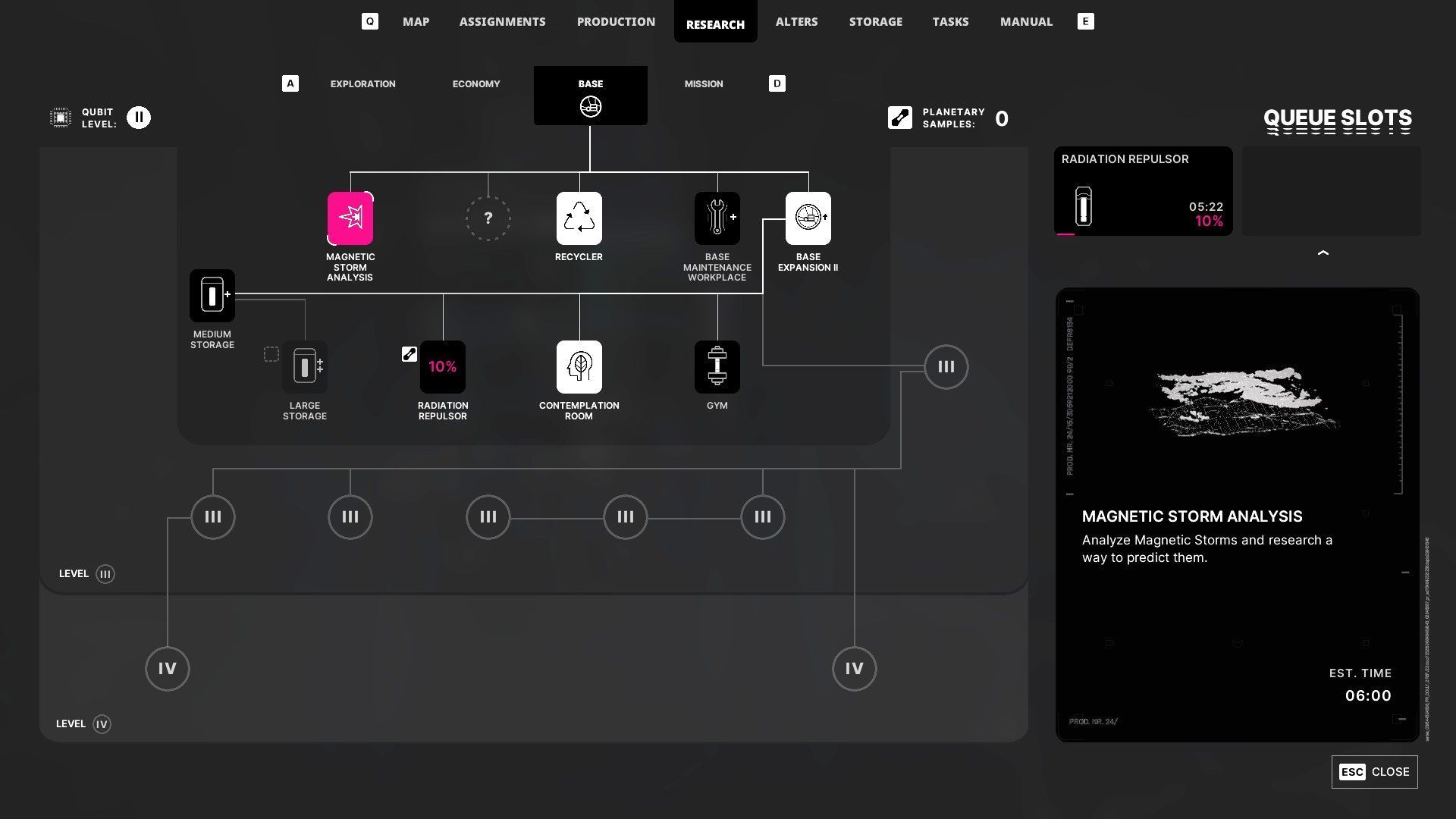- Repulsor radiacyjny to z kolei kluczowy projekt dla ochrony bazy. Także i w tym przypadku wymagane jest poświęcenie próbek planetarnych.