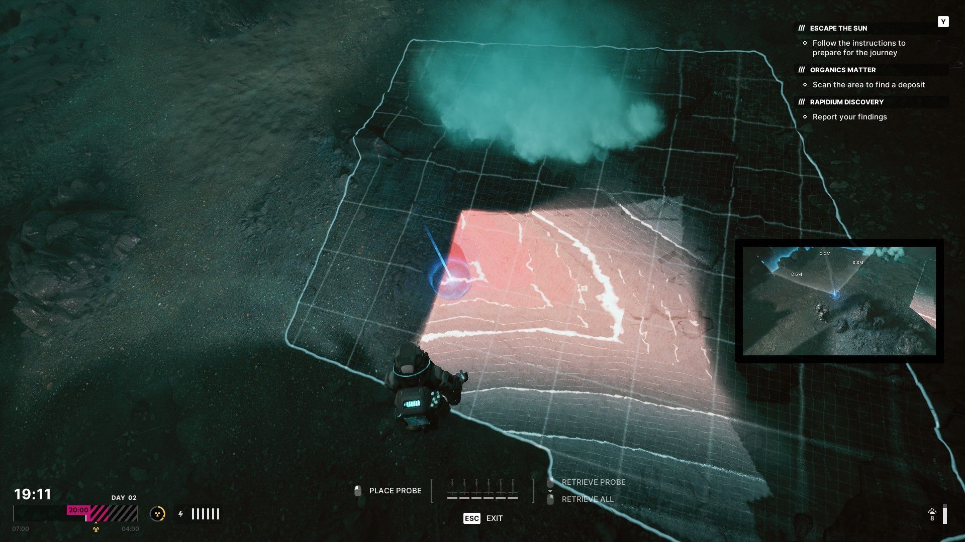 - Wbijajcie w ziemię kolejne sondy skanujące - maksymalnie możecie ich rozmieścić 6. Doprowadźcie do tego żeby wszystkie sondy połączyły się ze sobą, tzn. żeby utworzony został zamknięty obszar, który od razu zostanie zeskanowany.