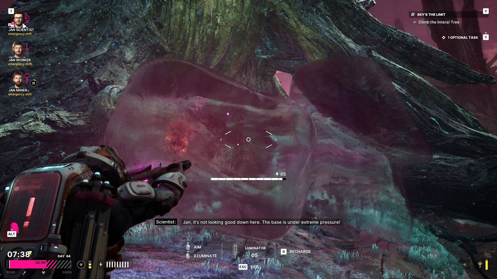 - Najpoważniejsze utrudnienie podczas wspinaczki to różne rodzaje anomalii, których jest mnóstwo. Podróżujcie z wyciągniętym luminatorem żeby nie przegapić żadnej anomalii i nie doprowadzić do "zderzenia". Jest wtedy ryzyko utraty 1 osłony przed anomaliami lub zwiększenia poziomu napromieniowania (napełnienie paska w 100% to utrata przytomności i zawalenie zadania).