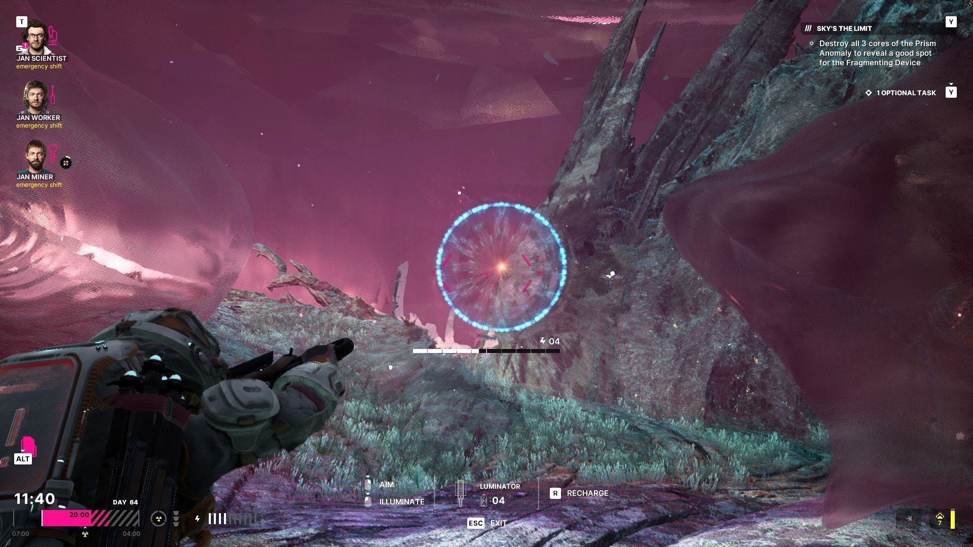 - Oświetlajcie anomalie żeby je niszczyć i wszystkie te akcje będą zużywały baterie do kombinezonu. Warto tu zaznaczyć, że nie ma obowiązku pozbywania się wszystkich anomalii i obok tych, które nie blokują przejścia możecie przebiegać.