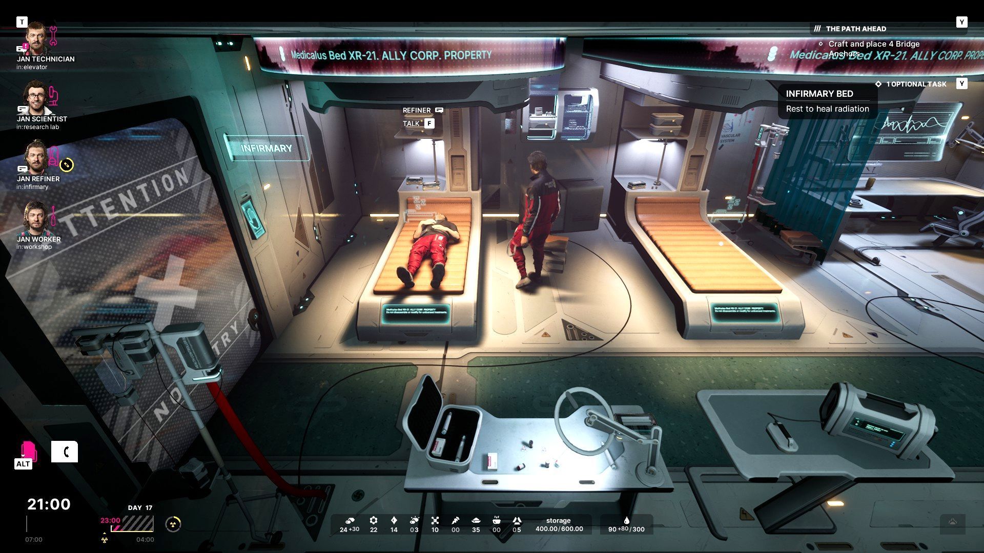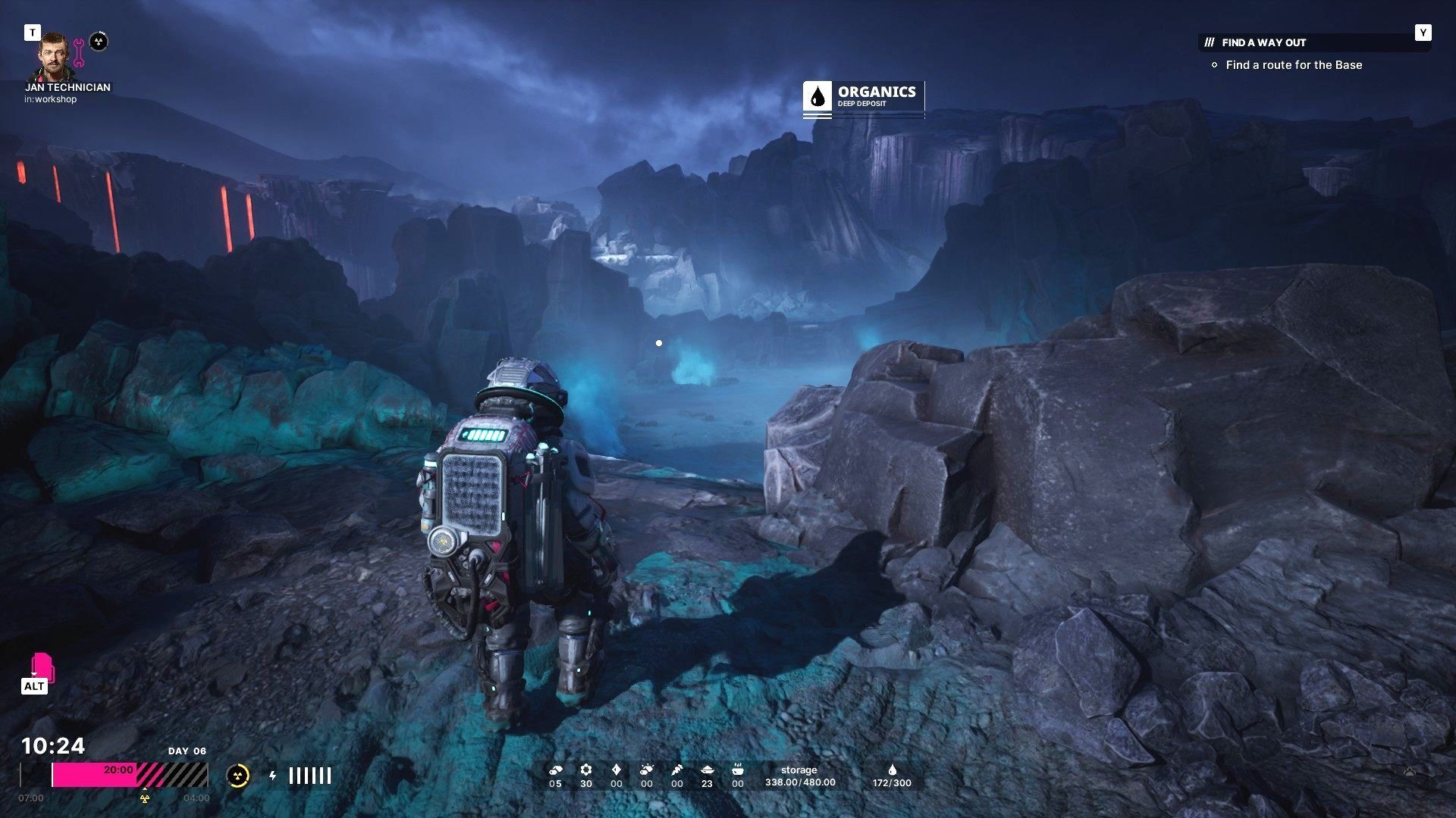 - W The Alters czas płynie dość szybko i łatwo możecie go zmarnować (razem z częścią posiadanych zapasów). Główny bohater powinien być zajęty eksploracją okolicy i stawianiem nowych konstrukcji - mowa tu o nowych pomieszczeniach bazy oraz o punktach wydobywczych na powierzchni planety. W godzinach wieczornych spotykajcie się z alterami, a następnie udawajcie się na odpoczynek żeby być wypoczętym kolejnego dnia.