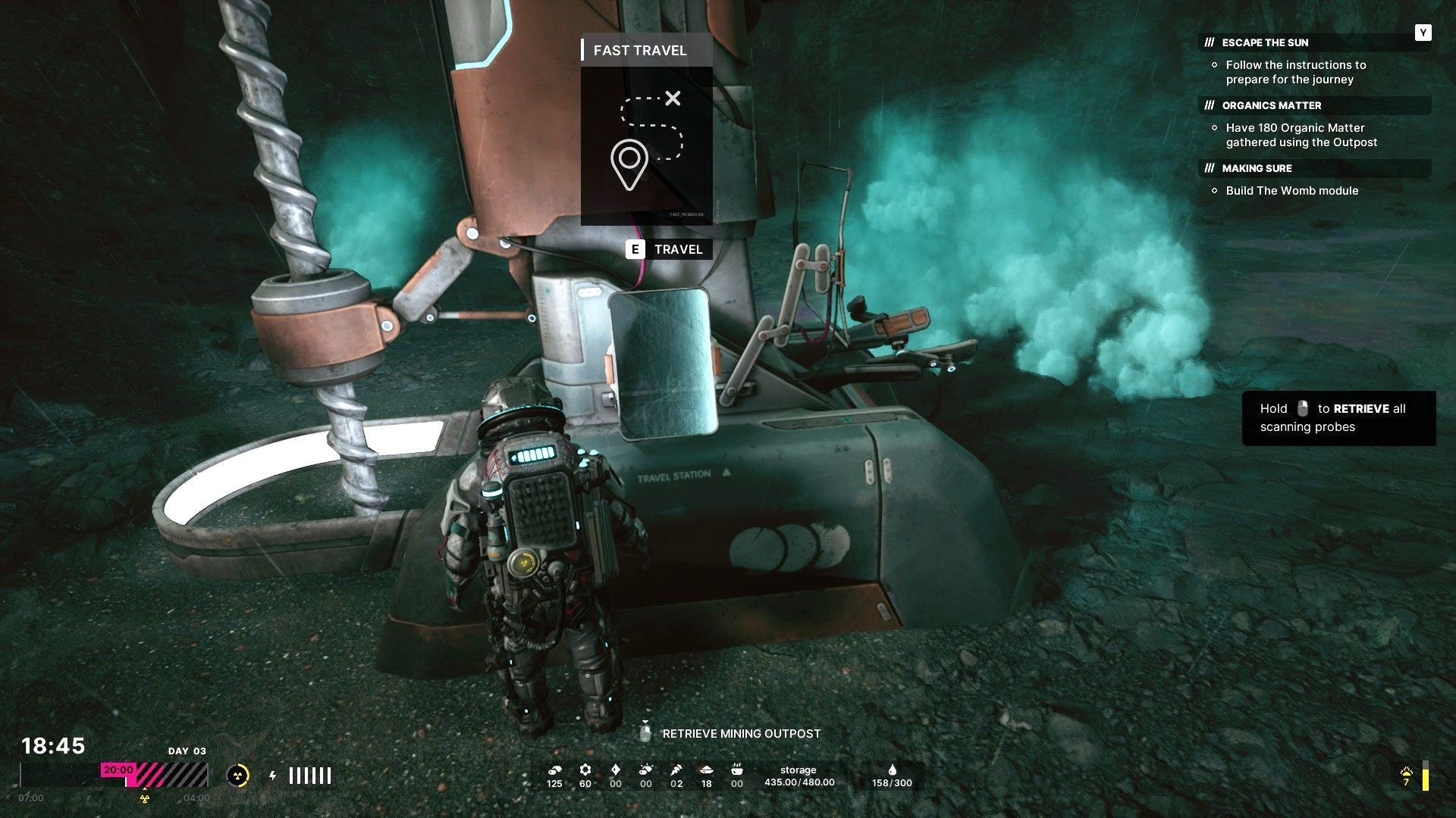 - Każdy punkt wydobywczy w grze oferuje szybką podróż jako jedną z dostępnych funkcji. Poleganie na niej jest bardzo opłacalne, gdyż fast travel nic nie kosztuje. Co więcej, użycie szybkiej podróży nie powoduje przyśpieszenia czasu i możecie w ten sposób znacznie szybciej podróżować do bardziej oddalonych miejsc na planecie.