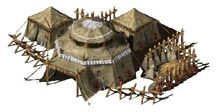 Kolejnym budynkiem, który może się nam przydać, lecz wcale nie musi, jest karczma. To w niej będziemy mogli od czasu do czasu nająć jakiegoś wojownika do pomocy. Wojownicy są dość silni w porównaniu z innymi jednostkami i posiadają (dochodzące razem ze wzrostem ich doświadczenia) przeróżne specjalne zdolności. Niestety kosztują dosyć drogo, a i wcale nie tak trudno ich stracić w boju. Decyzję względem ich przydatności pozostawiam każdemu graczowi do rozważenia samodzielnie, w odniesieniu do jego upodobań. Również stocznia oraz pomost przydadzą się nam jedynie wówczas, gdy będziemy potrzebować statków oraz gdy będą one miały po czym pływać. Świątynia nada się do składania ofiar na rzecz korzyści niecałkiem wymiernych. Można ją postawić, gdyż ładnie wygląda, ale generalnie bardziej się przydają dary dla ofiar powodzi niż modły o suszę. Z ostatnim zaś budynkiem, w którego posiadaniu będziemy mieli możliwość się znaleźć, jest targ. On się przydaje, gdyż dzięki niemu uda się nam zamienić nadwyżki surowcowe na brzęczącą monętę, której nigdy za dużo. Wiąże się jednak z targiem pewien kłopot, niby drobny a jednak... Co miesiąc zawita nań kupiec, dla którego brama zostanie automatycznie otwarta (jeśli celowo nie opuścimy krat). Gdy ujdzie to naszej uwadze, wówczas razem z kupcem mogą się do naszego miasta przedostać oddziały nieprzyjaciela, co jest wysoce niepożądane. Z resztą z tej strategii zdobywania miast przyjdzie nam samym jeszcze nieraz korzystać, gdyż jest wyjątkowo tania w użyciu.