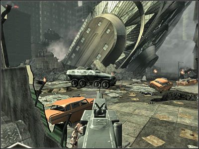 Zajmuj się też eliminacją żołnierzy wyposażonych w wyrzutnie rakiet. Na szczęście łatwo można ich rozpoznać, a ponadto jest dużo czasu na ich eliminację. Wkrótce zjawią się tu dwa pojazdy opancerzone (screen). Za każdym razem zaczynaj od eliminacji strzelca, a następnie likwiduj wybiegających z tylnej części pojazdu żołnierzy. Przy odrobinie szczęścia żaden z nich nie zdąży się nawet przygotować do odpowiedzenia na Twoje ataki.
