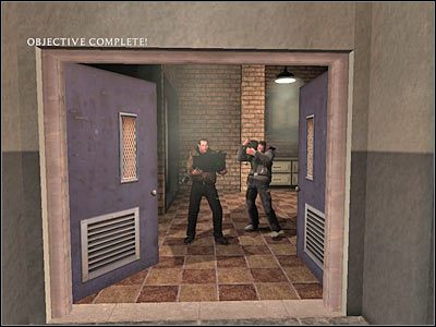 Musisz teraz zachować szczególną ostrożność, gdyż z windy wybiegnie BARDZO liczna grupa przeciwników (screen). Warto więc być przygotowanym i od razu podrzucić im granat. Nowi wrogowie pojawią się też w kuchni, ale będą to już pojedyncze osoby. Najważniejsze jest to żeby jak najszybciej załatwić wrogów, którzy wybiegli z windy.