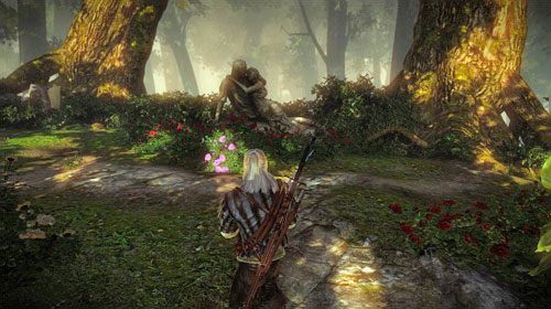 Chwilę później zostaniecie zaatakowani przez trzech bandytów. Nie są specjalnie wyposażeni, dodatkowo Triss wspomoże Cię w walce, powinieneś się z nimi rozprawić błyskawicznie. Jeden z bandytów będzie chciał skrzywdzić Triss, Geralt ją jednak uratuje, mimo to oboje wpadną do podziemi, do elfickiej łaźni.
