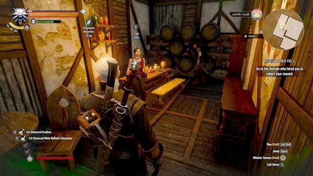 Finalnie udaj się do Oxenfurtu do karczmy Alchemia (Alchemy Inn). Znajdziesz tam dziewczynę, która zleciła ci to zadanie - Adelę. Za wykonanie zadania poza doświadczeniem otrzymasz jedynie 200 koron.