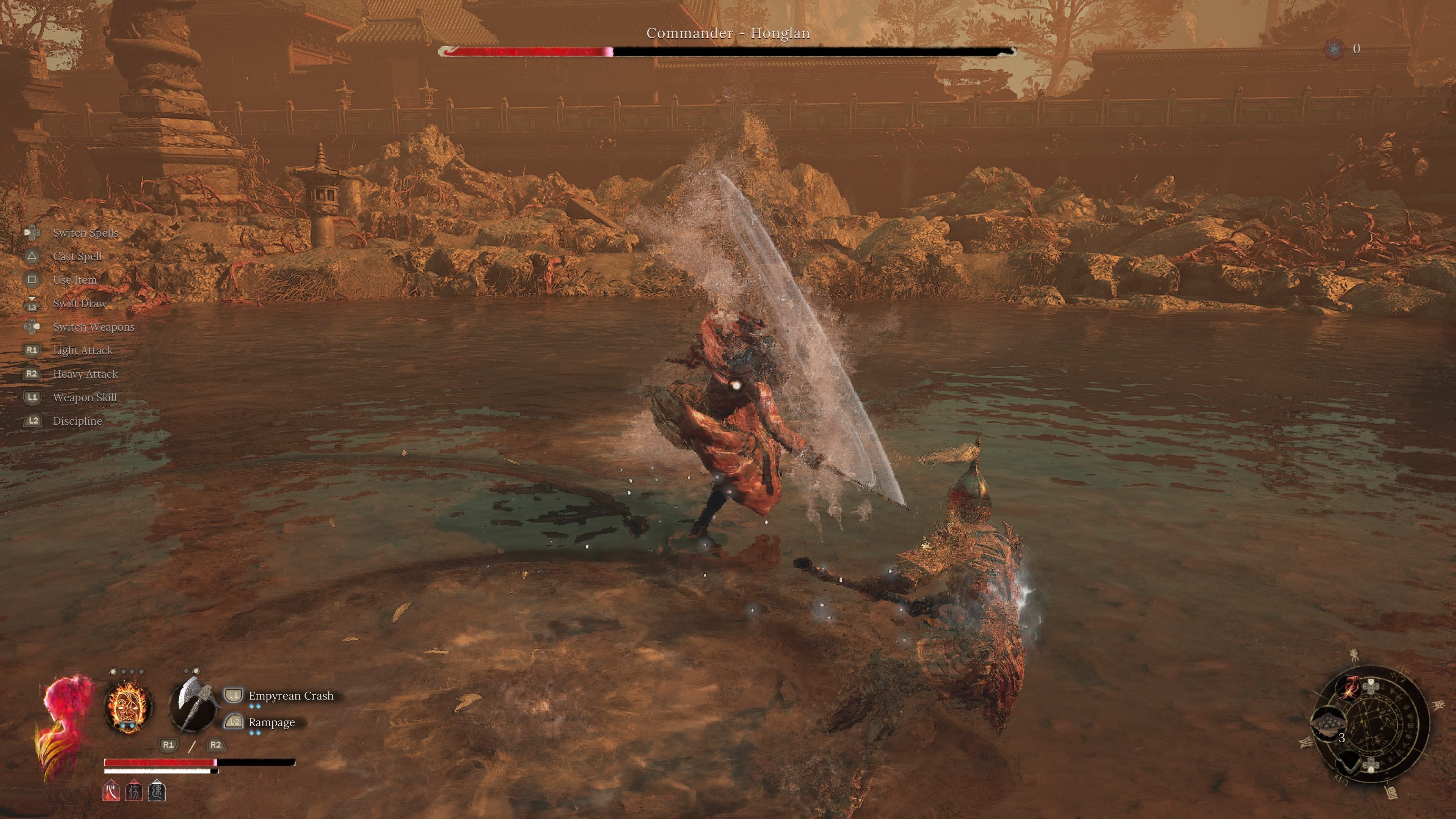 Jeśli będziecie mieć zamiar unikać wszystkich ataków Commander - Honglan i czekać na dogodny moment do zaatakowania, to może on nigdy nie nadejść. Boss nie dość, że atakuje dość często, to do tego odskakuje na sporą odległość gdy tylko zaatakujecie, przez co Wasz cios chybi. Z tego względu wymagana wręcz jest zdolność Clash, albo chociaż Block / Deflect, które mają niektóre bronie. Bez tego będzie Wam ciężko jakkolwiek zranić Honglan.