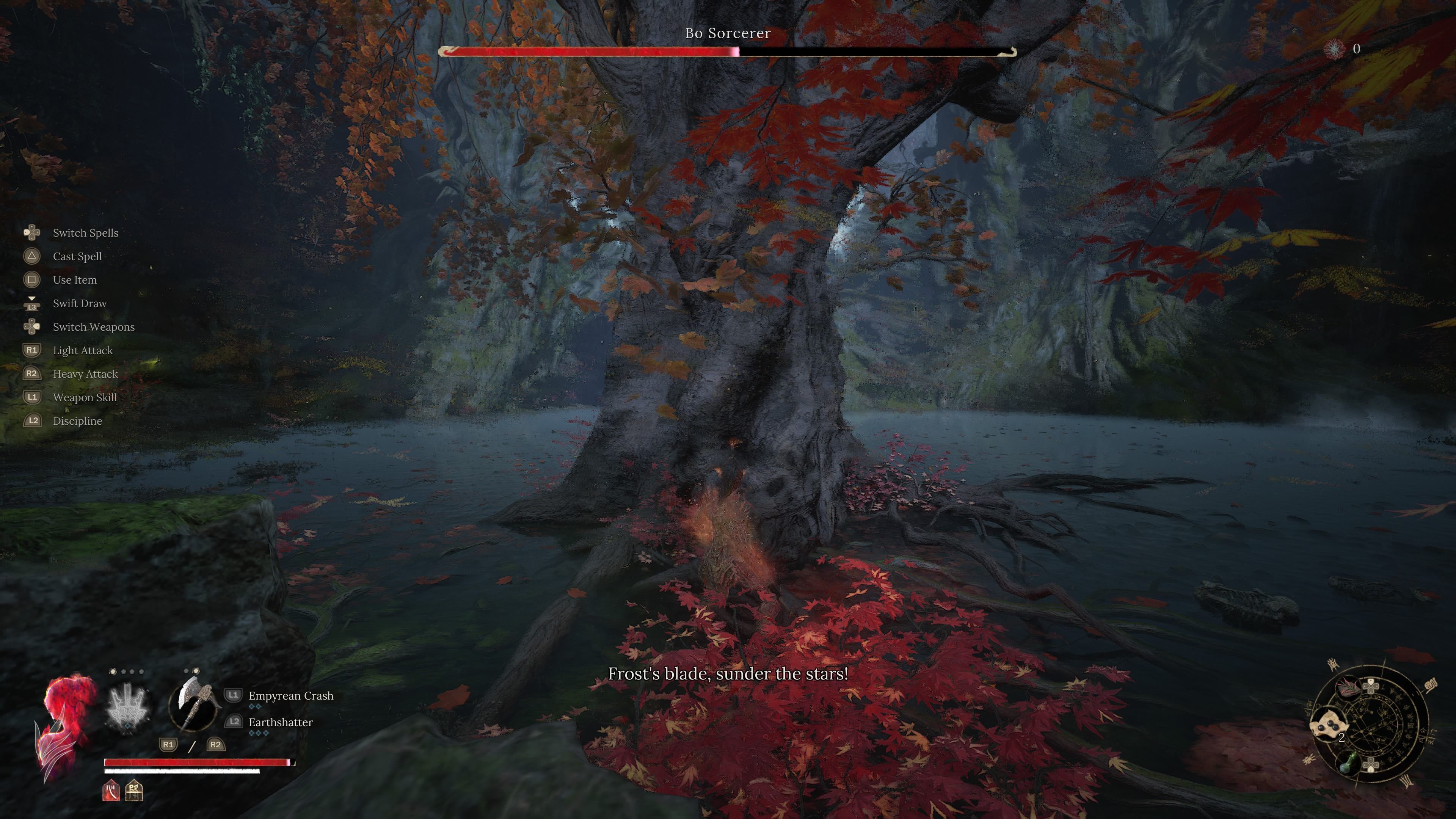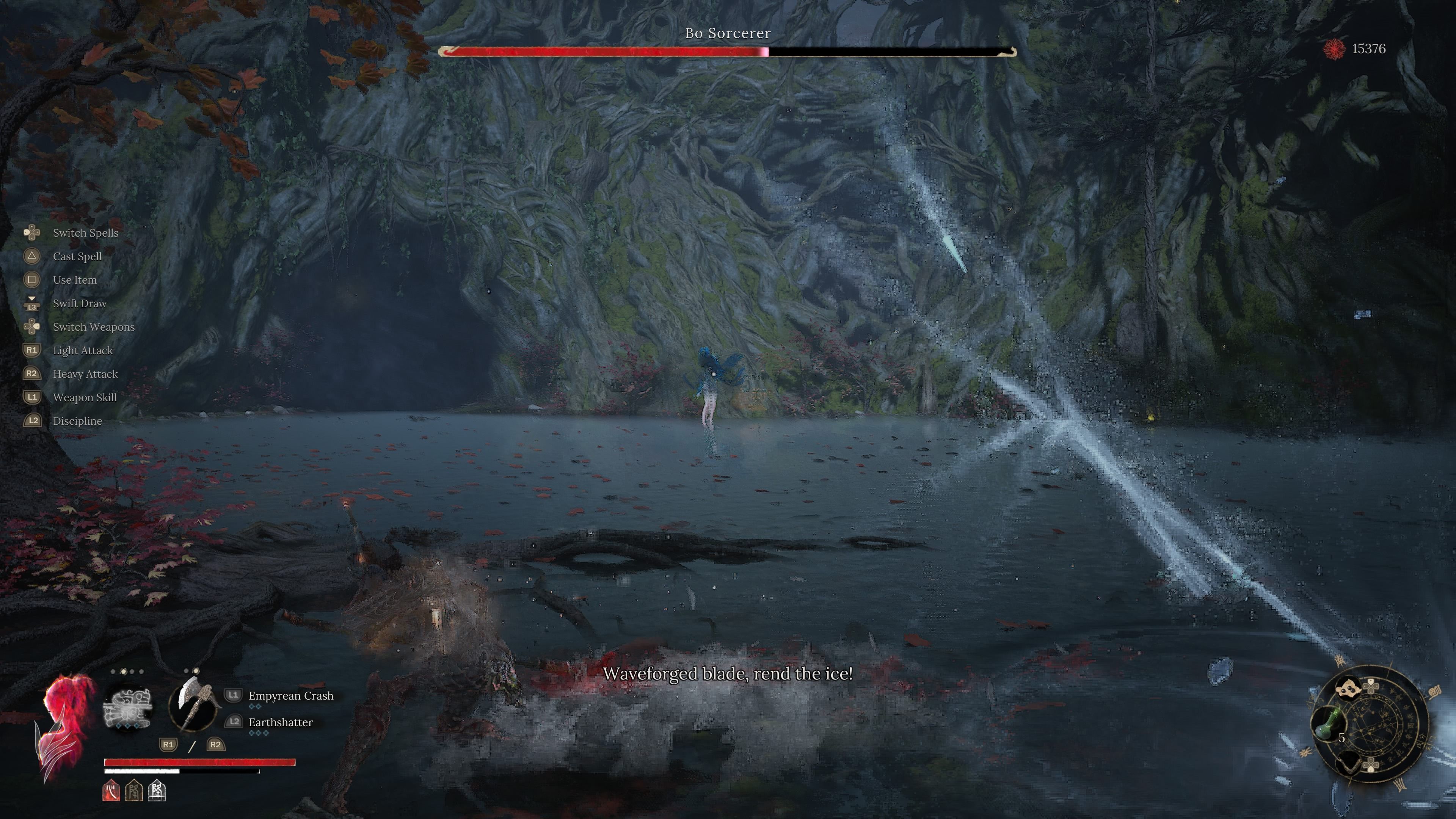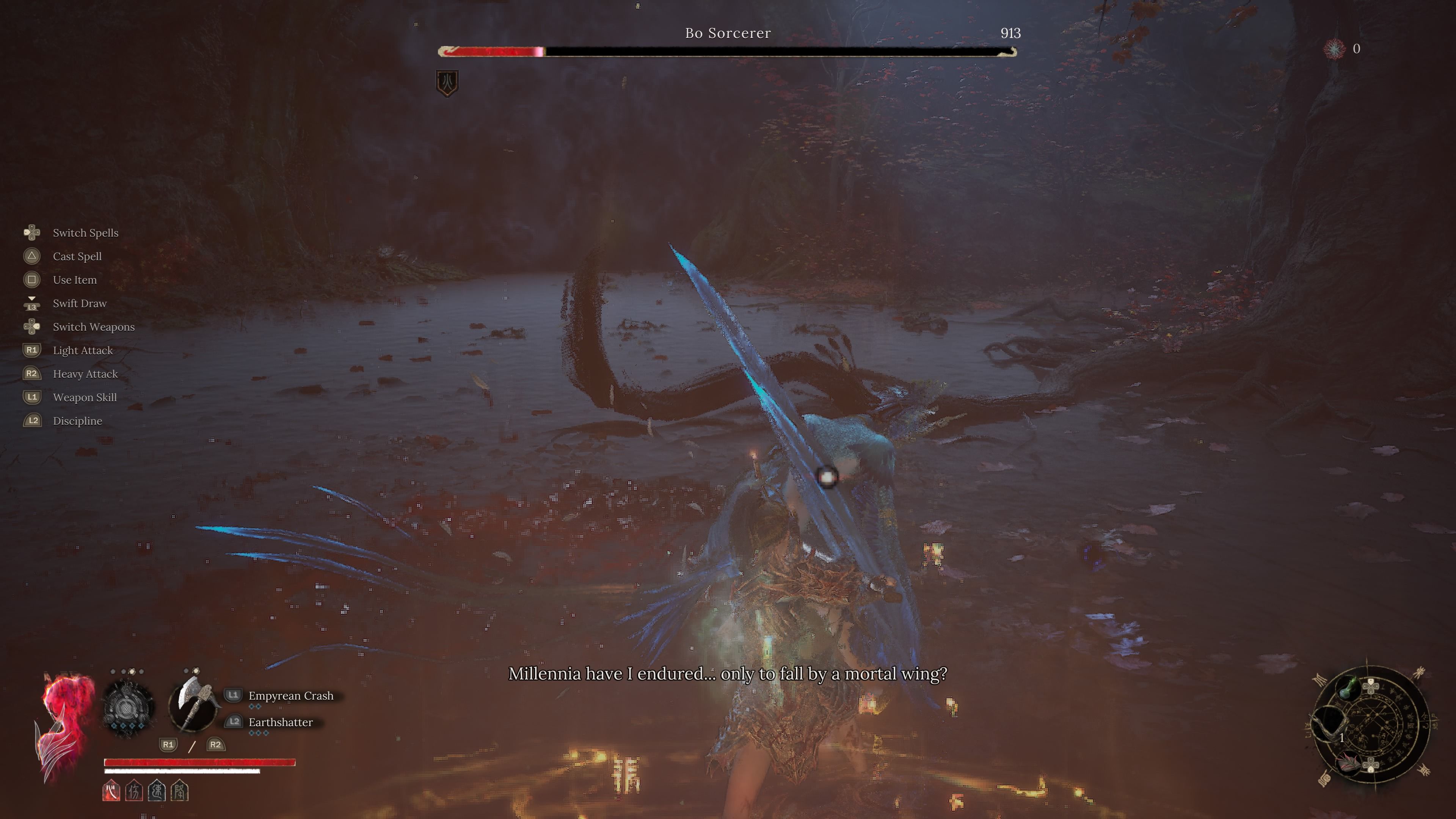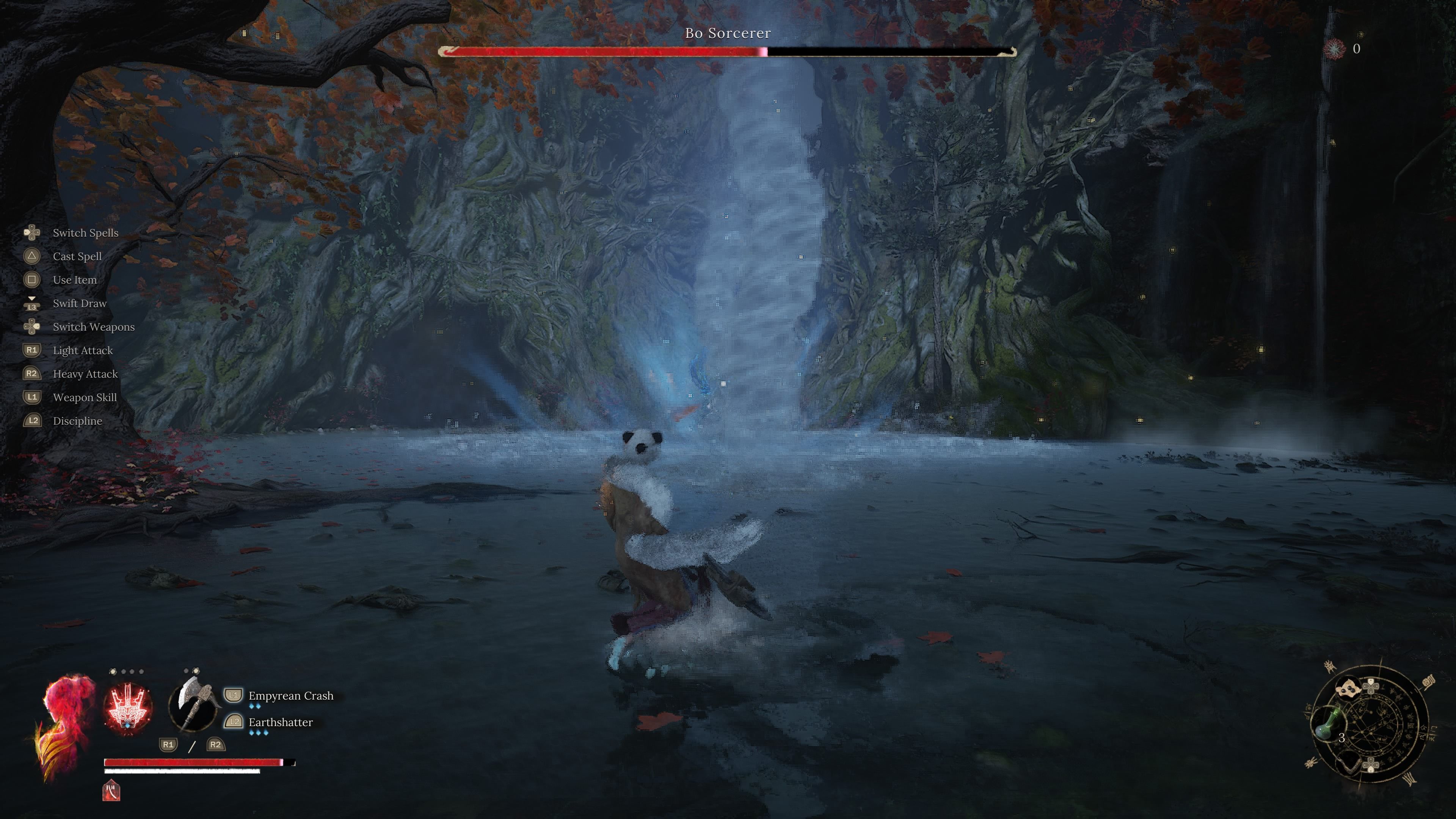 Gdy Bo Sorcerer wykonuje swój atak piórami, czym prędzej się od niej odsuńcie. Natomiast gdy ląduje, od razu po uniku bądźcie przygotowani na ładowany cios. Zadany w plecy lub od boku powinien ją ogłuszyć, a wy skorzystacie z ataku Obliterate. Po nim, wykonajcie Swift Draw, aby zamienić broń na topór, dzięki czemu wyskoczycie do przeciwnika i skrócicie znacząco dystans.