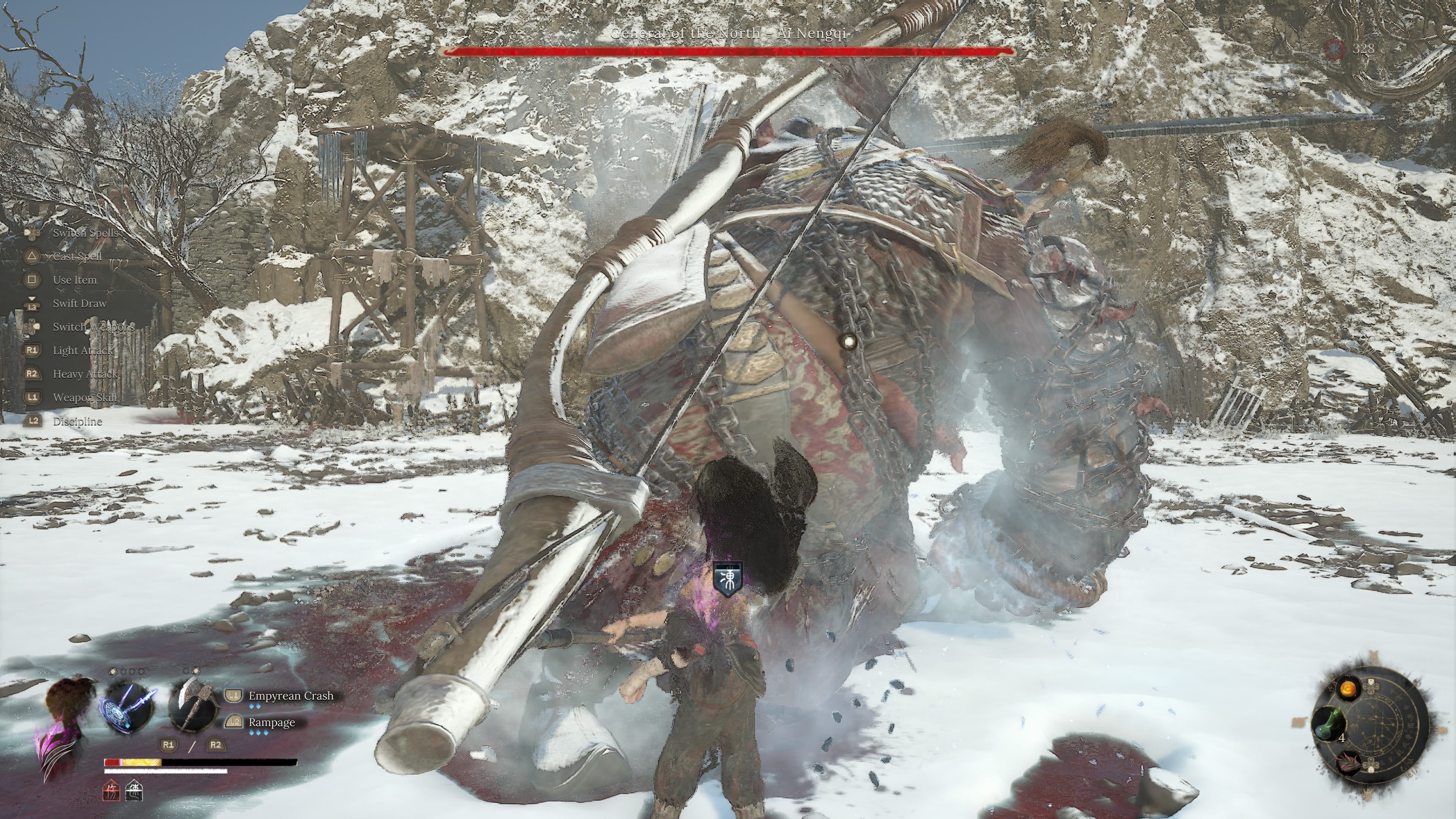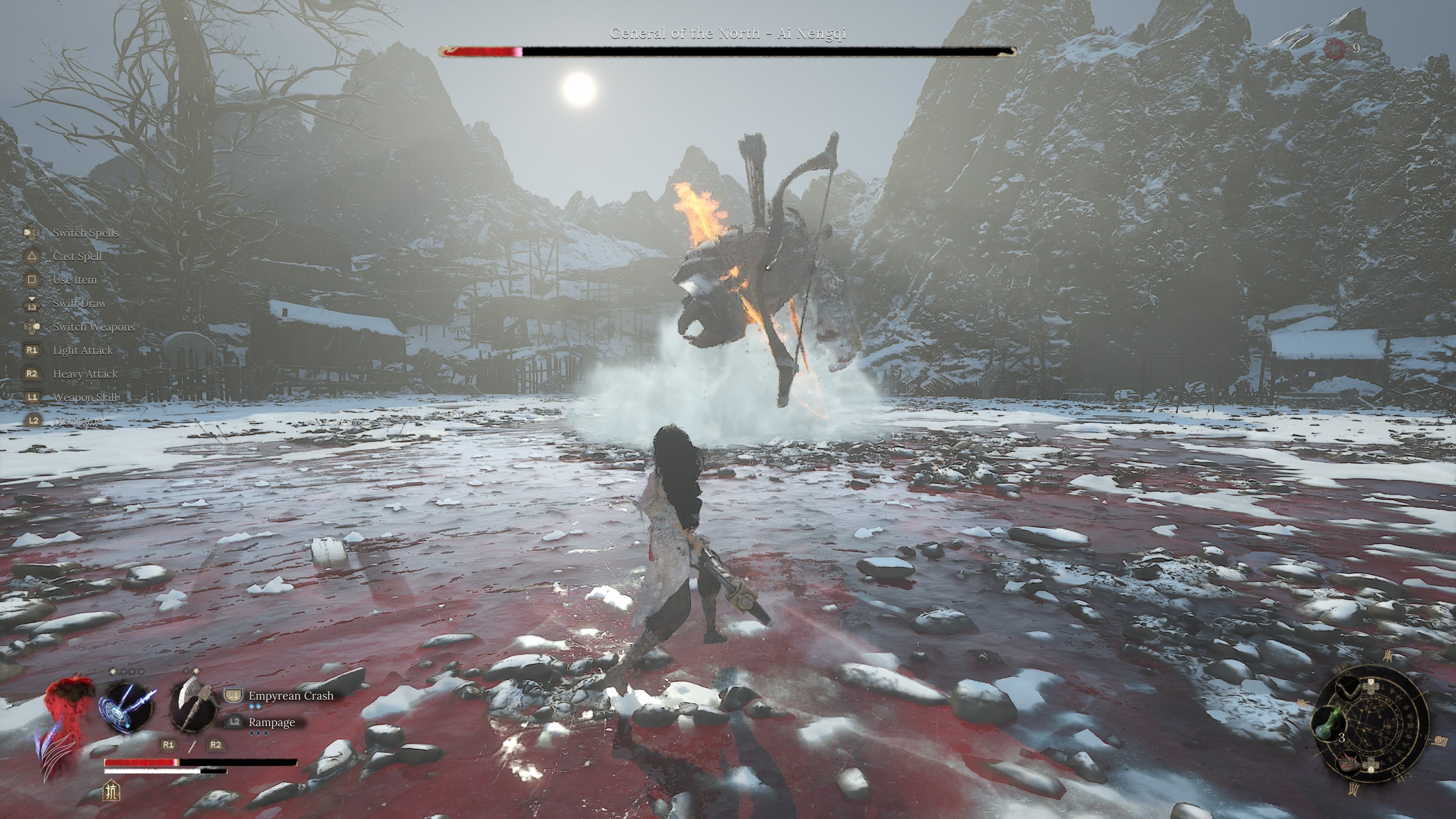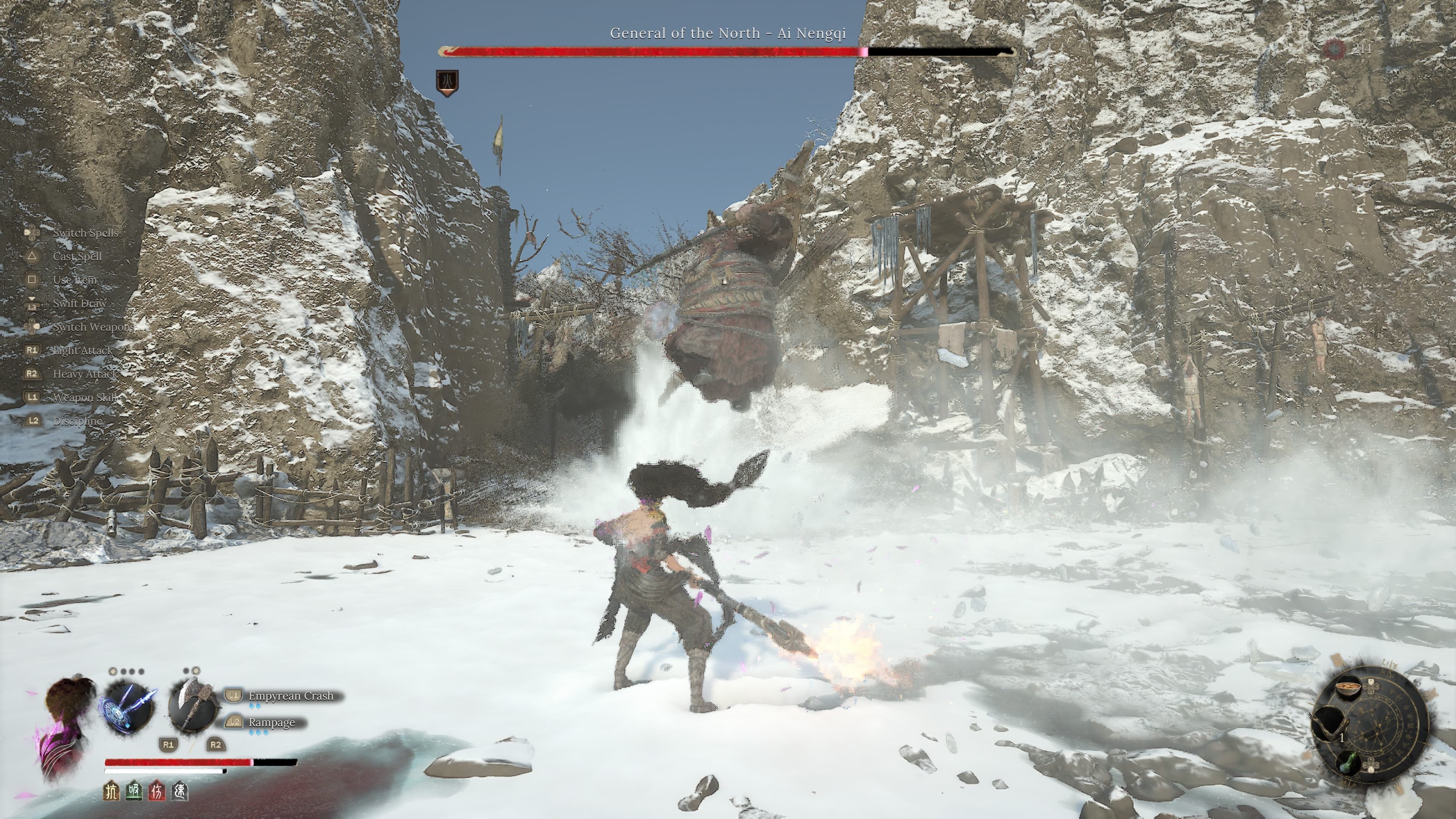 - 7 ognistych wymachów mieczem - General of the North w drugiej fazie zacznie nieco szybciej wymachiwać mieczem. Atak jest bardzo podobny do serii pięciokrotnych wymachów z pierwszej fazy, różni się jedynie tempo oraz to, że każdy atak nakłada status Burn na Wuchang.