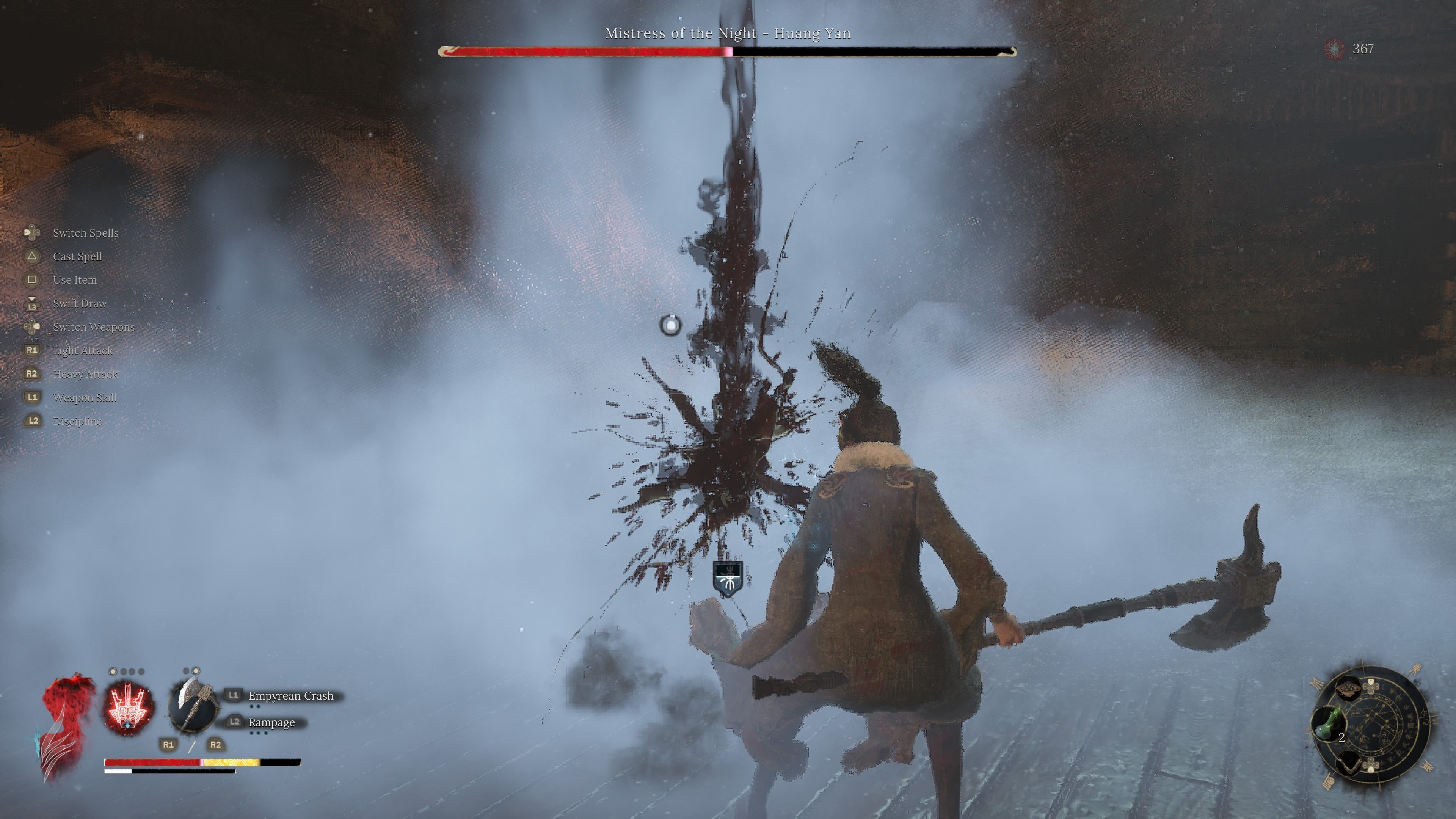 Boss będzie co chwila uciekał i używał przeróżnych zaklęć, dlatego walka dystansowa jest wskazana. Jeśli jednak z przeróżnych względów chcecie ją pokonać w walce wręcz, to musicie atakować ją głównie ładowanym, mocnym atakiem, celując w plecy. Każdy taki atak sprawi, że boss upadnie, a Wy będziecie mogli zadać obrażenia krytyczne.