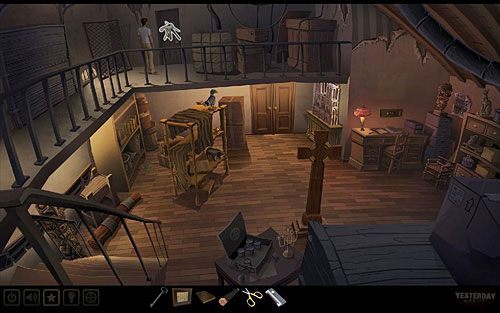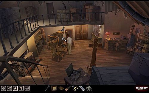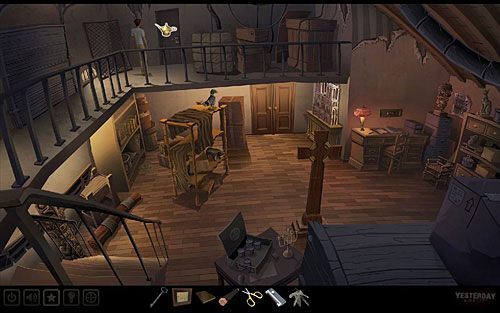 Otwórz nimi zamknięte drzwi u góry na zapleczu, wychodzące na galerię w sklepie. Niestety, kiedy spróbujesz je uchylić, okaże się, że trochę skrzypią, co mogłoby zwrócić uwagę Marcela.
