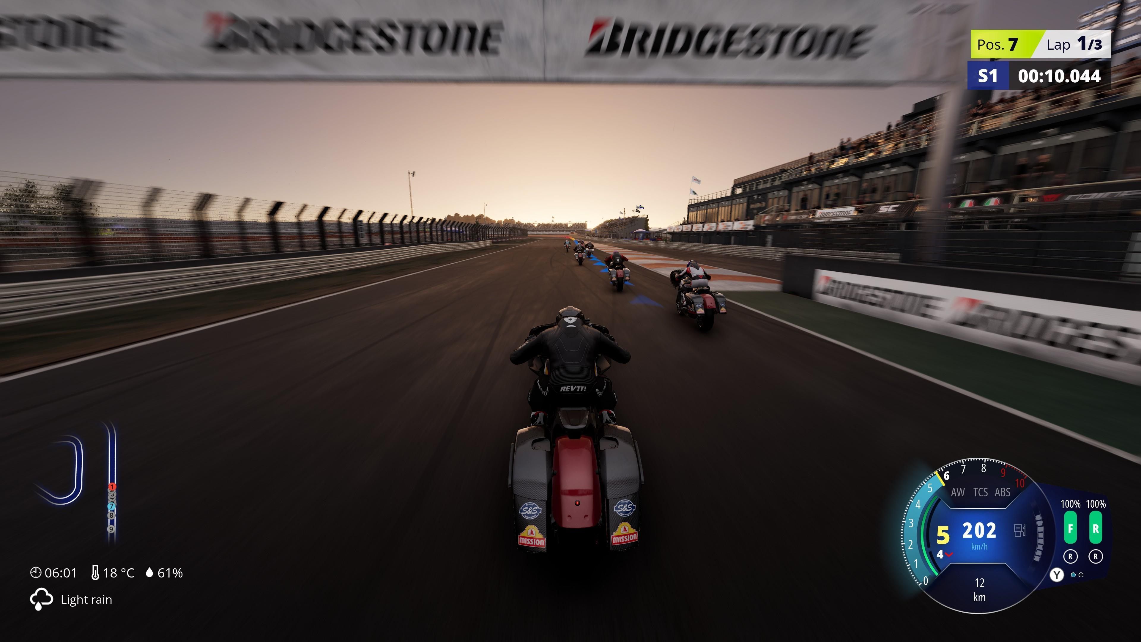 Szkoda, że jedyne, do czego twórcy faktycznie zdają się przejawiać tutaj pasję, to monetyzacja. W menu aż dwa obiekty odsyłają nas do sklepu z DLC (np. z mnożnikiem zarabianych kredytów – na szczęście nieprzydatnym, bo wirtualna ekonomia nie jest obliczona na grind), a już na miesiąc przed premierą mogliśmy podziwiać szczegółową rozpiskę płatnych dodatków, zaplanowanych aż do września 2027 roku w ramach dwóch przepustek sezonowych. Zresztą trzeba mieć tupet, żeby reklamować grę, podając w większości miejsc nie liczbę motocykli i tras zawartych w „podstawce”, a docelową, która stanie się faktem dopiero po wydaniu wszystkich płatnych DLC (w przygotowaniu są dokładnie 63 maszyny i 6 lokacji).