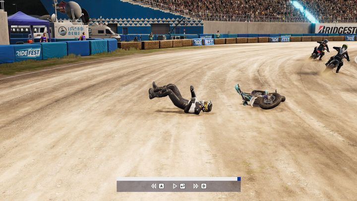 Najbardziej „szalona” rzecz, na jaką zdobyli się deweloperzy, to pojedynki jeden na jednego ze sławami motosportu. Na papierze koncepcja brzmiała intrygująco, ale jej realizacja wywołuje tylko uśmiech politowania. W praktyce jest to dokładnie to samo co starcia z Rywalami (przez duże „R”) z RIDE 5, tyle tylko że tym razem mamy do czynienia z prawdziwymi ludźmi. Ale nie ma w nich nic wyjątkowego, nie wypowiadają ani słowa i nawet zwycięstwo nad nimi nie jest nagradzane niczym poza ulepszonymi motorami albo kaskami ze specjalnymi wzorkami. Ot, odhaczamy wyścig i przechodzimy do następnego.