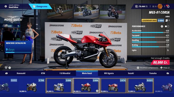 Novum inspirowane Gran Turismo – rozdział motocykli na nowe i używane. U dilera tych drugich kupujemy modele sprzed 2015 roku. Rotacja następuje co kilkanaście dni, więc na ulubione „klasyki” można czekać cholernie długo. Nietrafiony pomysł.RIDE 6, Milestone, 2026.