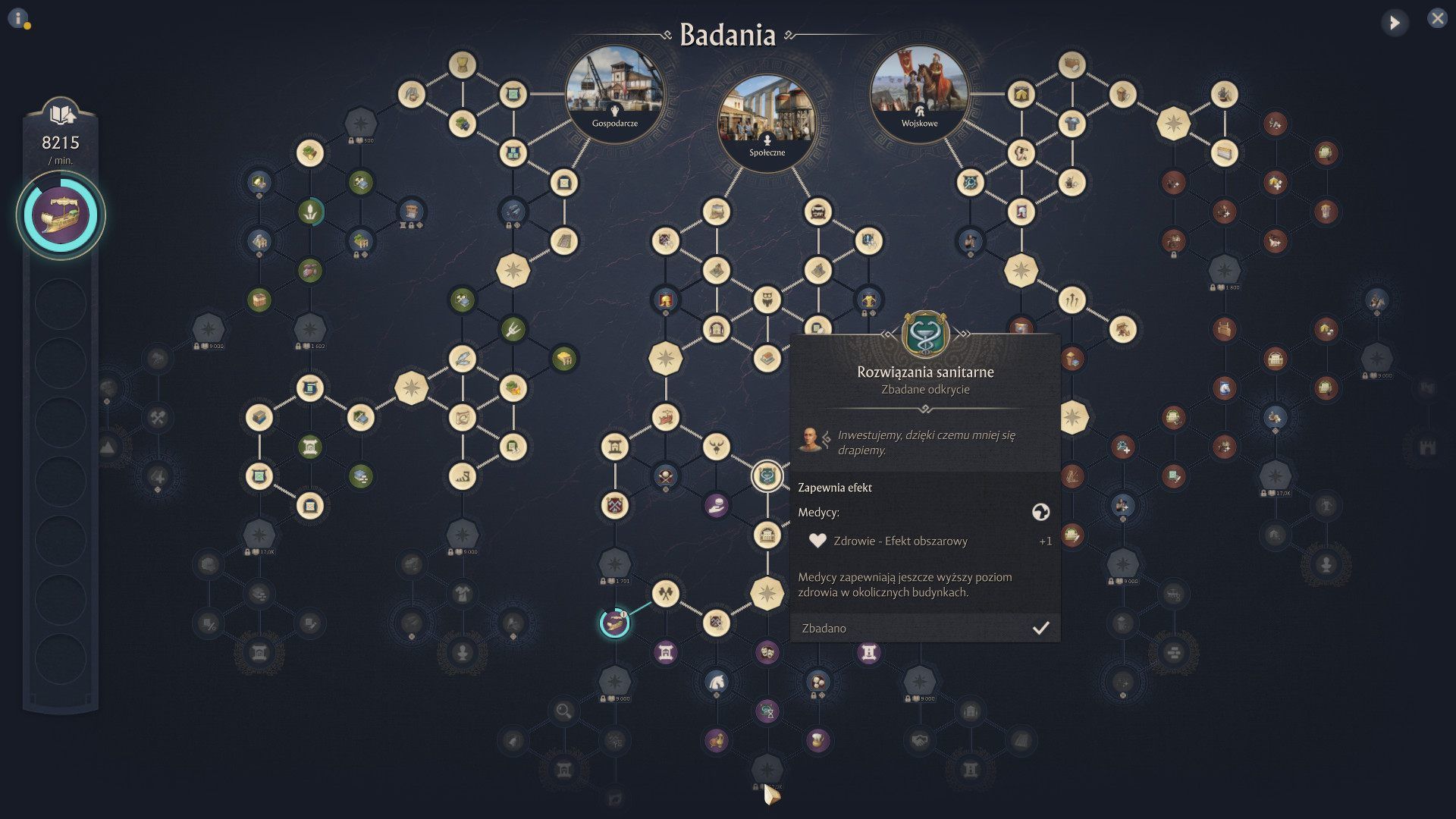 Wraz z rozwojem naszych wysp generujemy coraz więcej punktów wiedzy, które służą do odblokowywania wybranych przez nas technologii. Te podzielone zostały na trzy segmenty – gospodarczy, społeczny i wojskowy. Rozwój nie musi być jednak liniowy, bo na drzewkach znajdziemy specjalne „węzły” ze specjalnymi warunkami (np. zbuduj konkretny budynek i zbierz określoną liczbę punktów nauki), po spełnieniu których będziemy mogli odkrywać sąsiadujące technologie.
