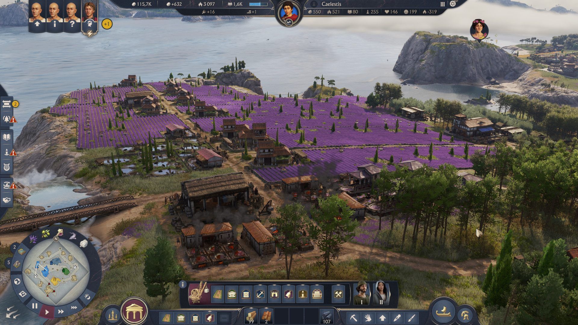 Kampania skupia się na realizacji poszczególnych zadań i raczej niewielkiej skali. Mnie znacznie więcej frajdy sprawia swobodne budowanie i rozwijanie rozbudowanej sieci miasteczek – w tym chociażby masowej produkcji mydła.Anno 117: Pax Romana, Ubisoft, 2025.