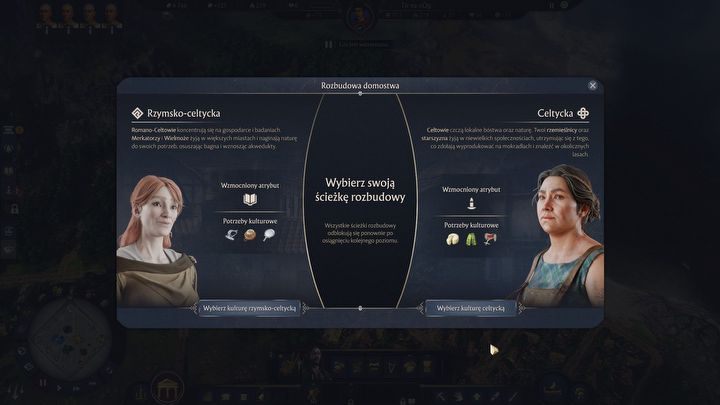 Konsekwencje tego wyboru są spore, bo choć obie ścieżki mają zaledwie trzy etapy rozwoju, przekładają się na pięć grup mieszkańców o różnych wymaganiach i mogących wykonywać inne prace. Wizualnie także widać spory kontrast, gdyż obok kamiennych, przysadzistych domostw mamy tu również delikatne i nieco wyrwane z kontekstu budynki o typowo rzymskich cechach, wyraźnie odcinające się od otoczenia.
