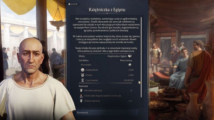 Niestety, fabuła ma tu niewielkie znaczenie – niezależnie od tego, kim jesteśmy, i tak będziemy musieli przetransportować do cesarza 5 ton garum na swoim statku i płynąć po kolejne dobra do kupca. Sam pomysł na opowieść o rodzeństwie wydaje się ciekawy (polecam przede wszystkim historię Marcii!), ale już wykonanie każe założyć, że najpierw stworzono łańcuszek questów w oderwaniu od jakiejkolwiek narracji, a potem jak najmniejszym kosztem próbowano to dostosować do dwóch zupełnie różnych historii. Szkoda.
