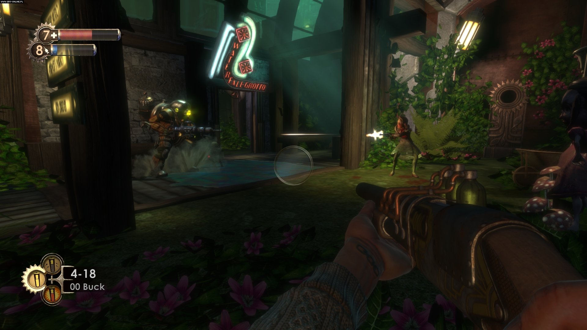 To, co w głównej mierze wyróżnia nowe wydania, to podwyższona rozdzielczość do 1080p i animacja działająca przez większość czasu w sześćdziesięciu klatkach na sekundę. Podrasowano także tekstury i poczyniono trochę kosmetycznych zmian, które sprawiają, że Rapture wydaje się nieco mniej obskurne. Dzieje się to głównie dzięki zwiększeniu liczby detali w oceanie, dodaniu roślin czy ławic mniejszych rybek. Trochę szkoda, że nie zdecydowano się na większą ingerencję w oprawę graficzną, dostosowując ją do panujących obecnie standardów, ale z drugiej strony mamy do czynienia z dziełami tak – nie boję się użyć tego słowa – wybitnymi, że być może mogłoby to za mocno zmienić ich charakter. Poza tym żaden BioShock nie zestarzał się jeszcze na tyle, żeby trzeba było go przepisywać na nowe platformy całkowicie od początku. Osoby, które wcześniej miały do czynienia jedynie z wersją gry przeznaczoną na Xboksa 360, docenią również fakt poszerzenia pola widzenia, czyli FOV.