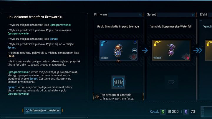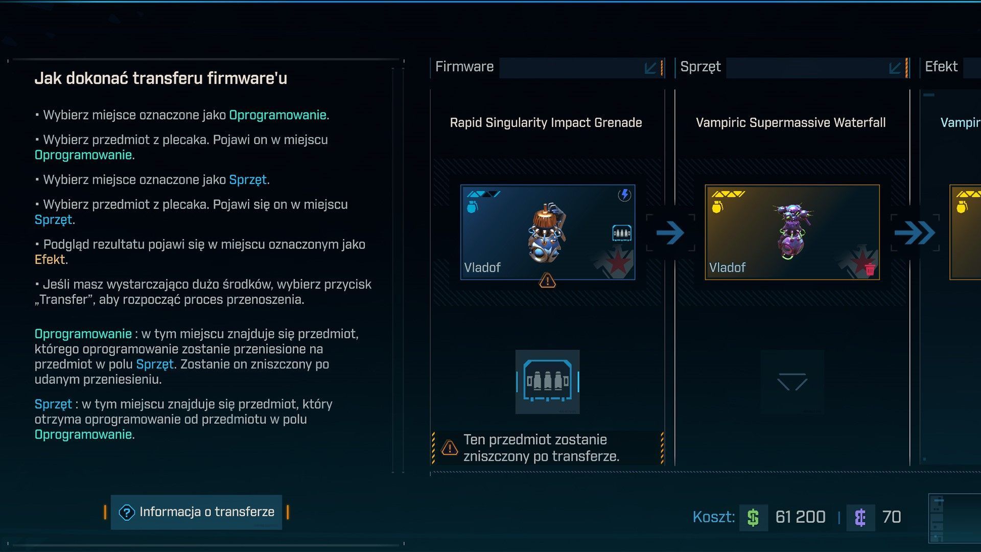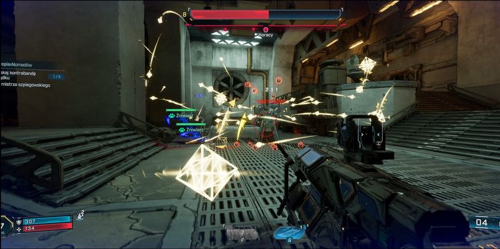Dysponujemy specjalnymi slotami w ekwipunku – osobnymi na lecznicze stymulanty, rzucane przedmioty (granaty, noże itd.), klasowe modyfikacje, tarcze i ulepszenia. Każdy z przedmiotów zapewnia premię do statystyk lub unikalne pasywki, dlatego w połączeniu z możliwościami poszczególnych broni mamy tutaj mnóstwo opcji tworzenia buildów. Zwłaszcza że nawet zestawy naprawcze mogą zawierać pasywne buffy. Na późniejszym etapie gry przedmioty mogą zawierać firmware – czyli dodatkowe perki (o których powiem więcej przy okazji omawiania endgame’u).