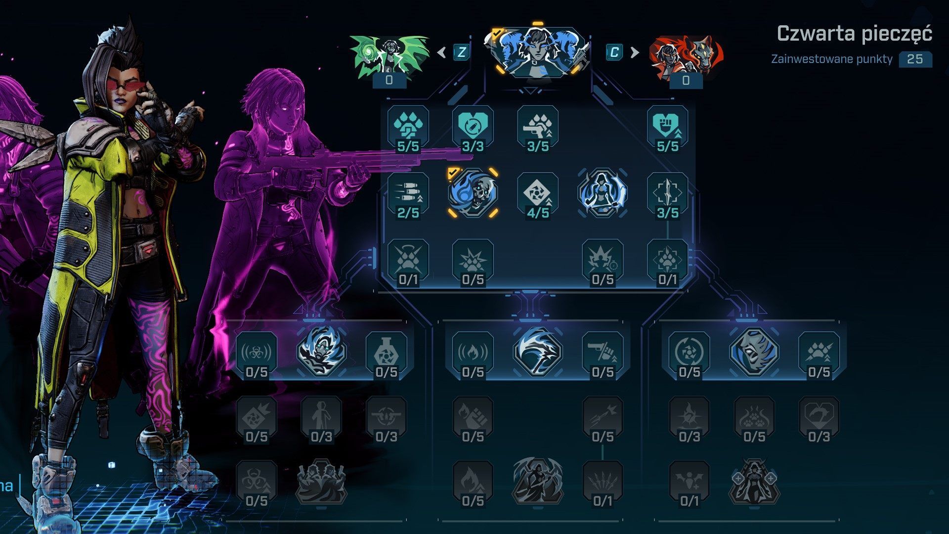 Każda z klas dysponuje trzema własnymi drzewkami umiejętności. Bazują one na skillach charakterystycznych dla danej postaci i składają się zarówno z pasywnych zdolności, jak i statystyk powiązanych z daną mocą. Dzięki temu możemy rozwijać bohatera zgodnie z naszym stylem gry. Umiejętności klasowe wzmacniamy poprzez przydzielanie punktów do konkretnych pasywek, aż w końcu docieramy do augmentów – skilli, które dodatkowo modyfikują naszą główną zdolność. W razie potrzeby bez problemu możemy zresetować nasze wybory w tym zakresie – potrzebujemy jedynie trochę waluty (cena rośnie wraz z powiększaniem się naszego drzewka), ale nie są to kolosalne liczby. Im dalej jesteśmy w grze, tym ta kwota wydaje się bardziej trywialna.