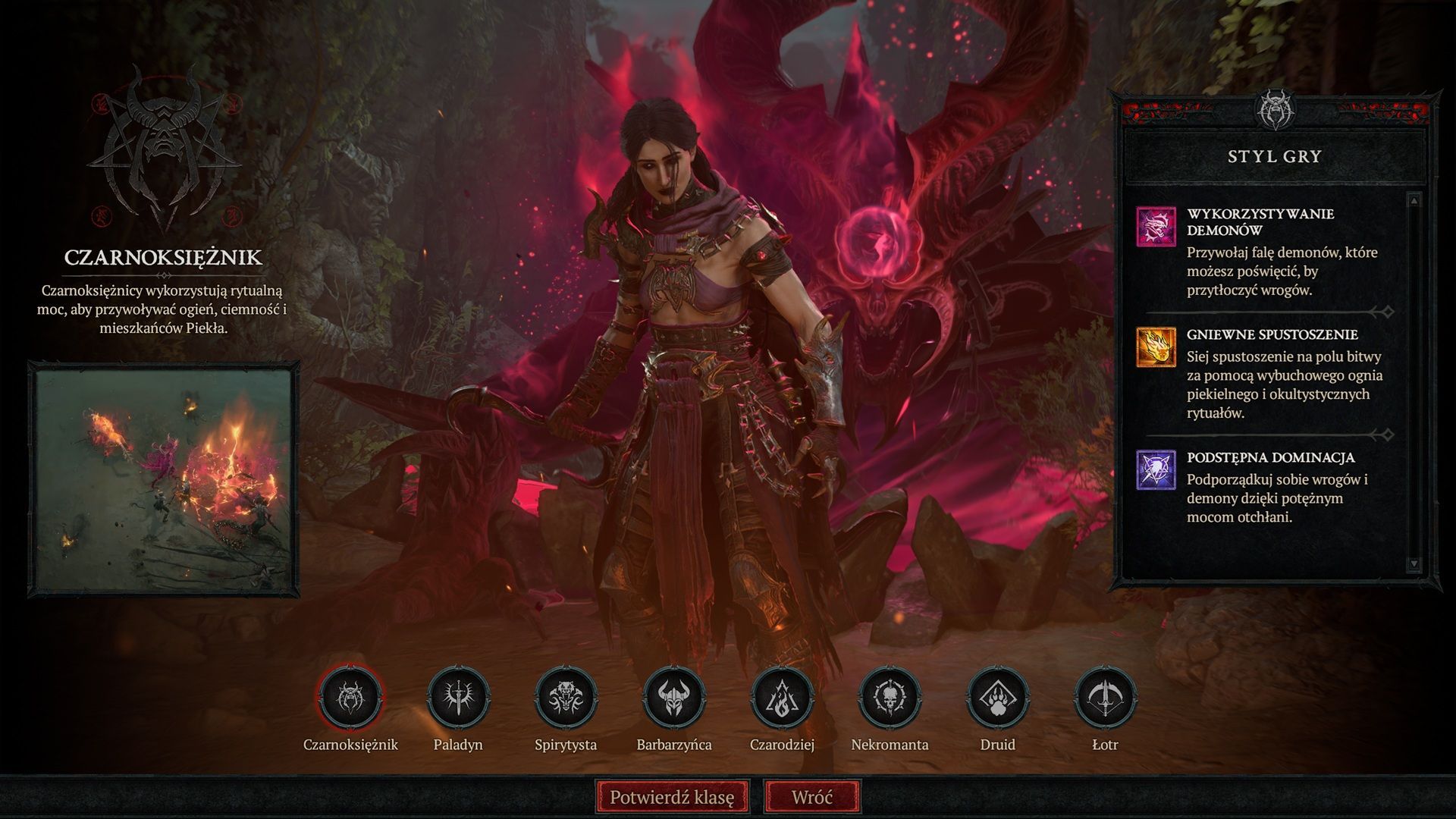 Czarnoksiężnik to bardzo dobra klasa, którą gra się niezwykle przyjemnie z dwóch ważnych względów. Przede wszystkim dostajemy tu całkiem niezłą różnorodność dostępnych buildów. Mamy sporo swobody – możemy bawić się w mrocznego władcę i kontrolować zastępy demonów, możemy pójść o krok dalej i samemu wcielić się w jednego z nich, albo po prostu skupić się na dewastującej magii cienia.