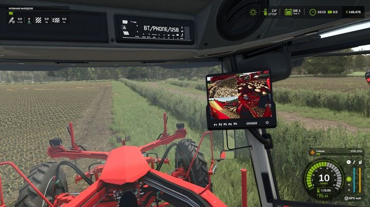 Kolejny minus to brak kamery cofania w niektórych maszynach, na przykład w kombajnie Grimme VARITRON 470. To niezrozumiała decyzja, zwłaszcza że w dodatku Mercedes-Benz Trucks Pack mieliśmy pełnoprawny podgląd zza pojazdu. Tutaj natomiast – statyczny obraz. Niby detal, ale w serii, która stawia na realizm, takie rzeczy naprawdę się czuje.