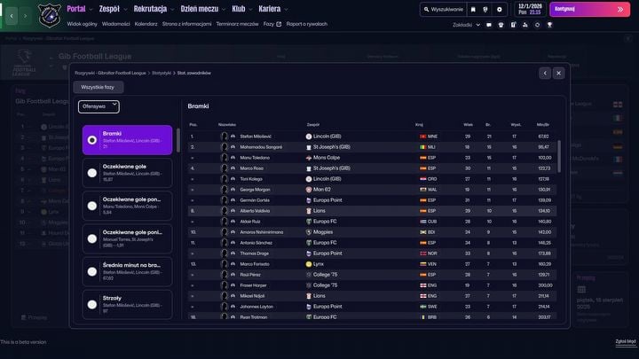Dostanie się do widoku najlepszych strzelców rozgrywek wymaga teraz za dużo klikania.Football Manager 26, Sega, 2025.