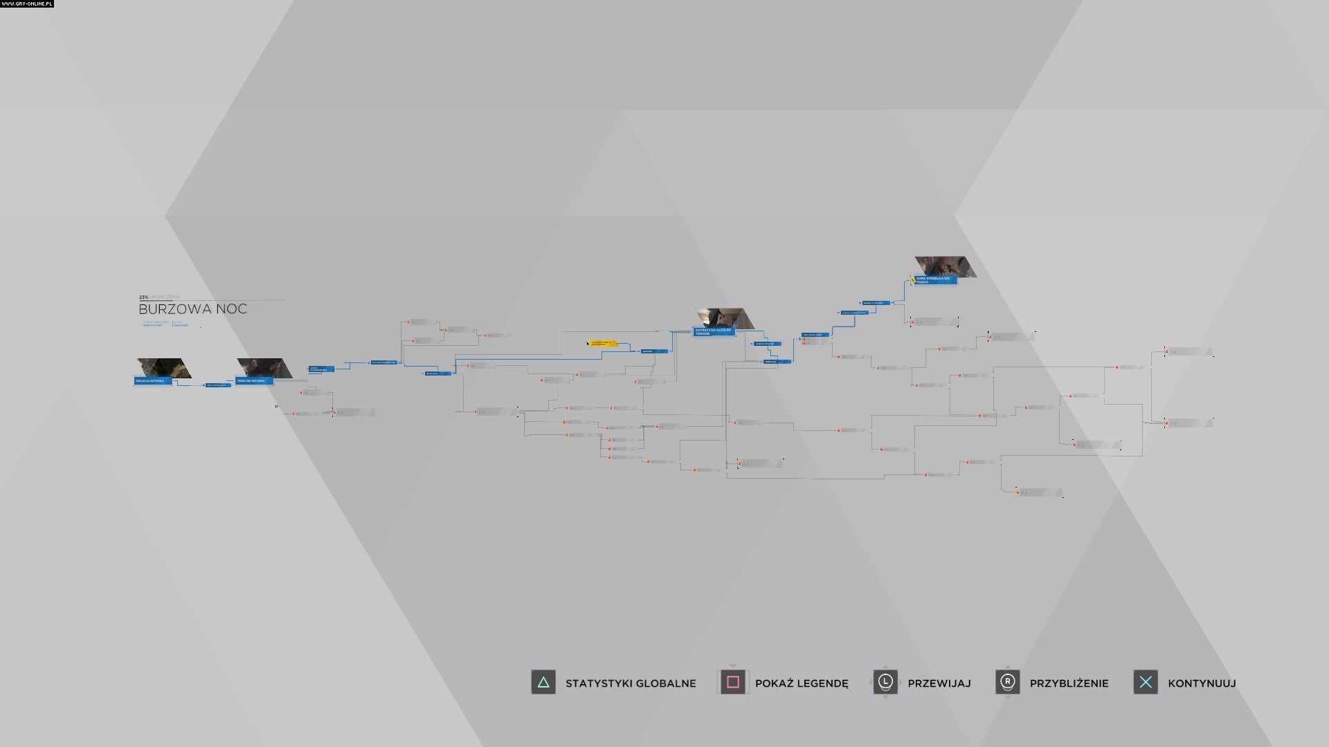 Po ukończeniu każdego rozdziału możemy zobaczyć na schemacie, ile alternatywnych ścieżek dostępnych było w danym fragmencie.